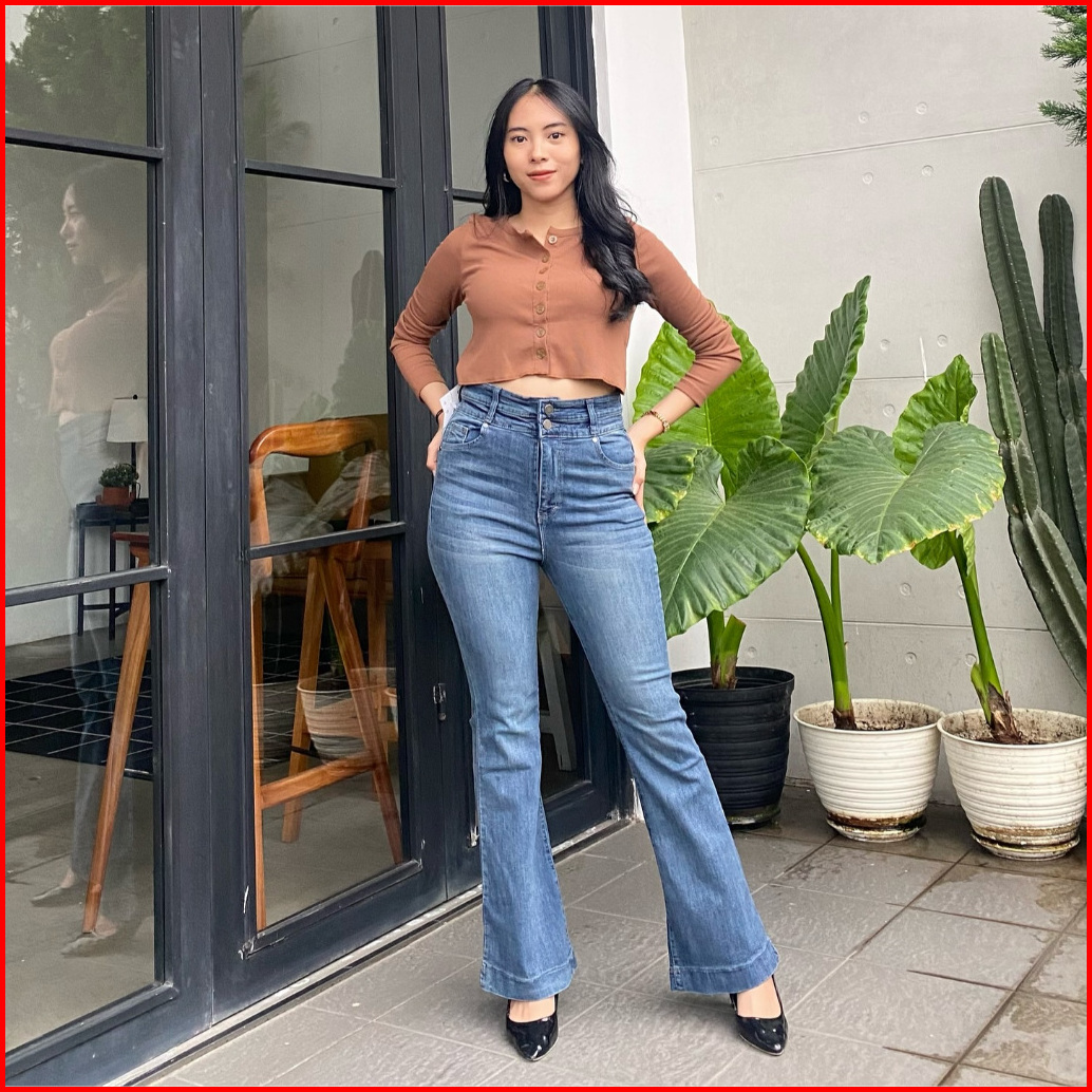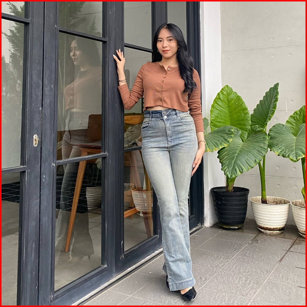 Best Seller Highwaist Cutbray Emily Series Kancing 2 Celana Jeans Cutbray Wanita Premium Quality