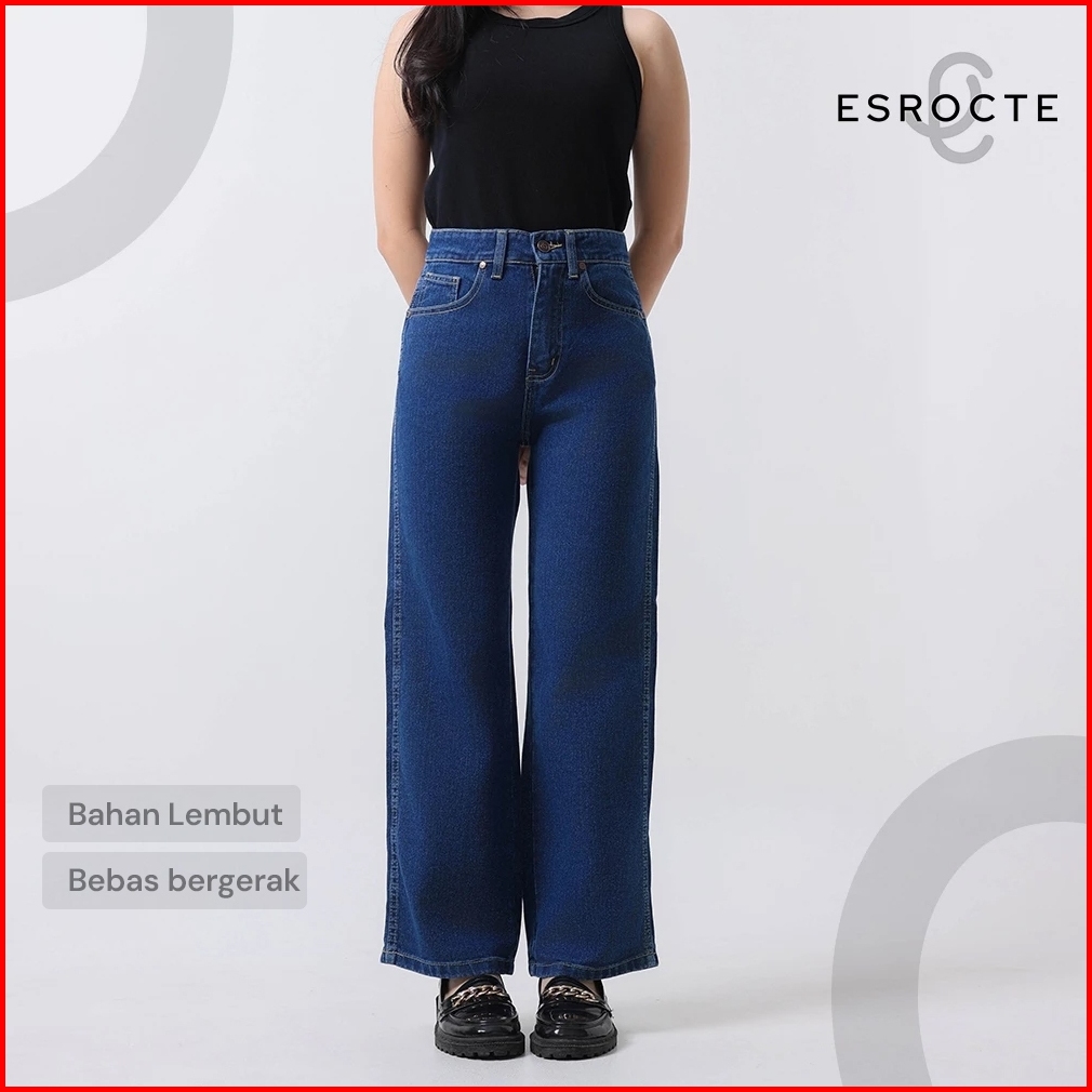 Esrocte Naia Pants Celana Loose Jeans High-waist Wanita Navy 2638 New Size