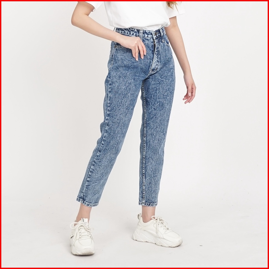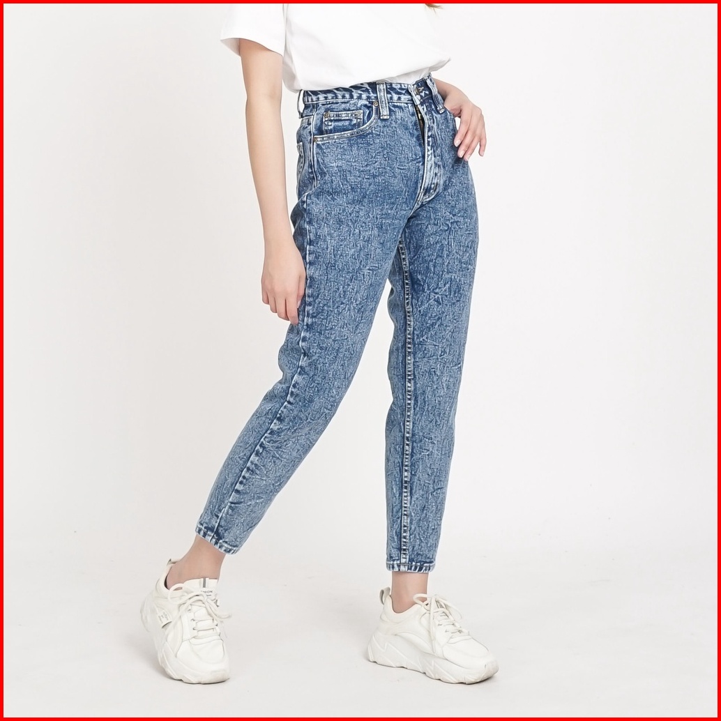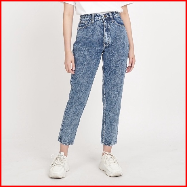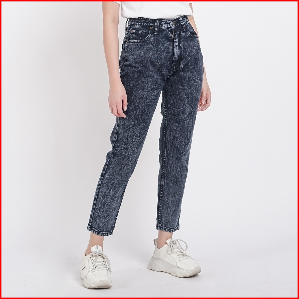 Esrocte Zaya Pants Celana Boyfriend Jeans High-waist Wanita Black Snow Blue Snow 2638 New Size