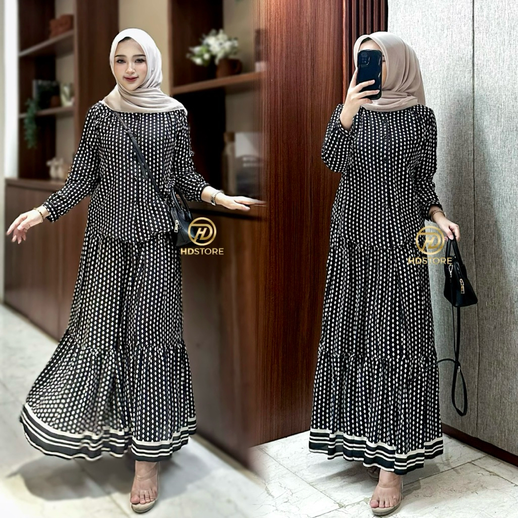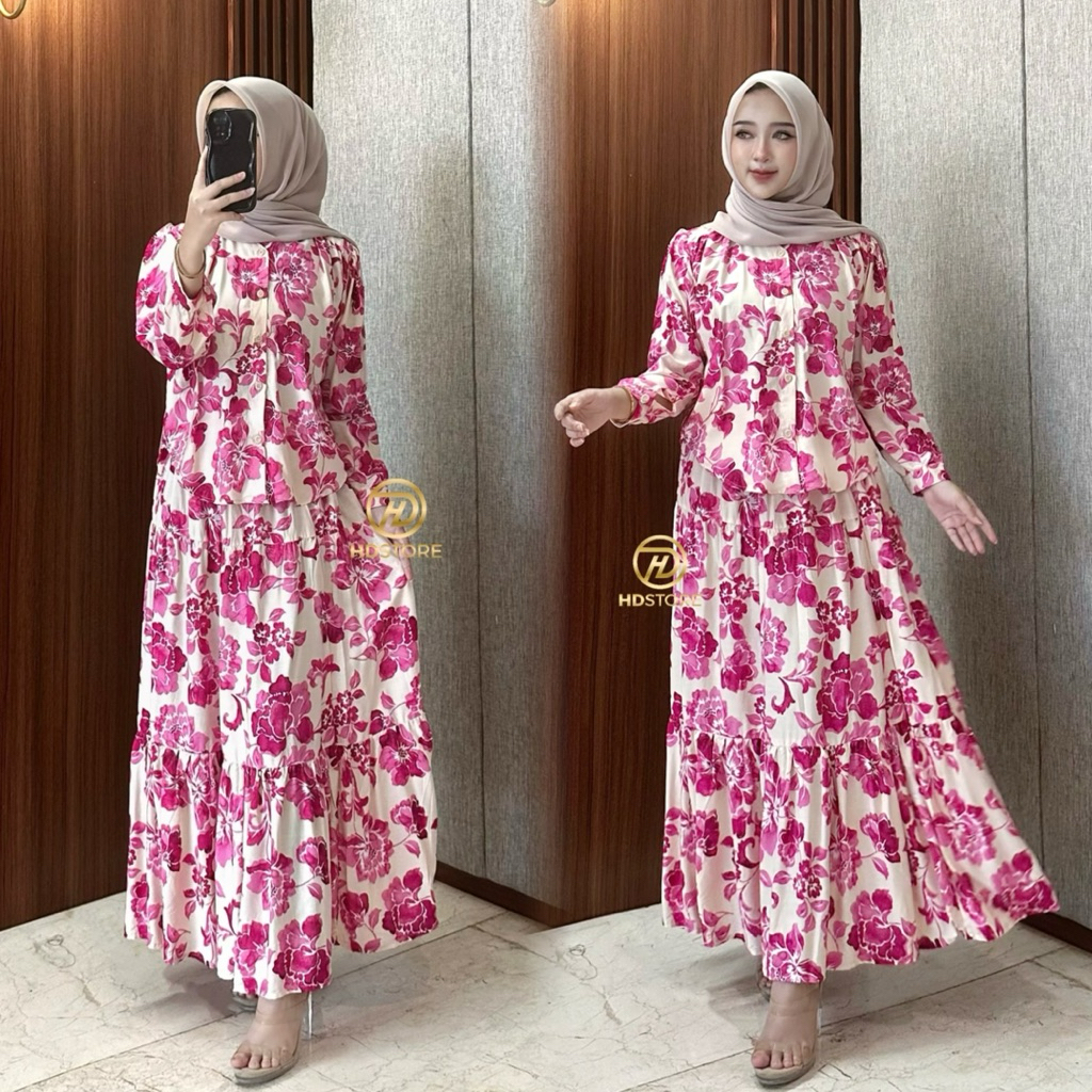 Oneset Rok Rayon - Claudia Set Rok 2in1 Bahan Rayon Motif Setelan Wanita Jumbo Set Rayon Rok Dan Blouse Kancing Busui Friendly
