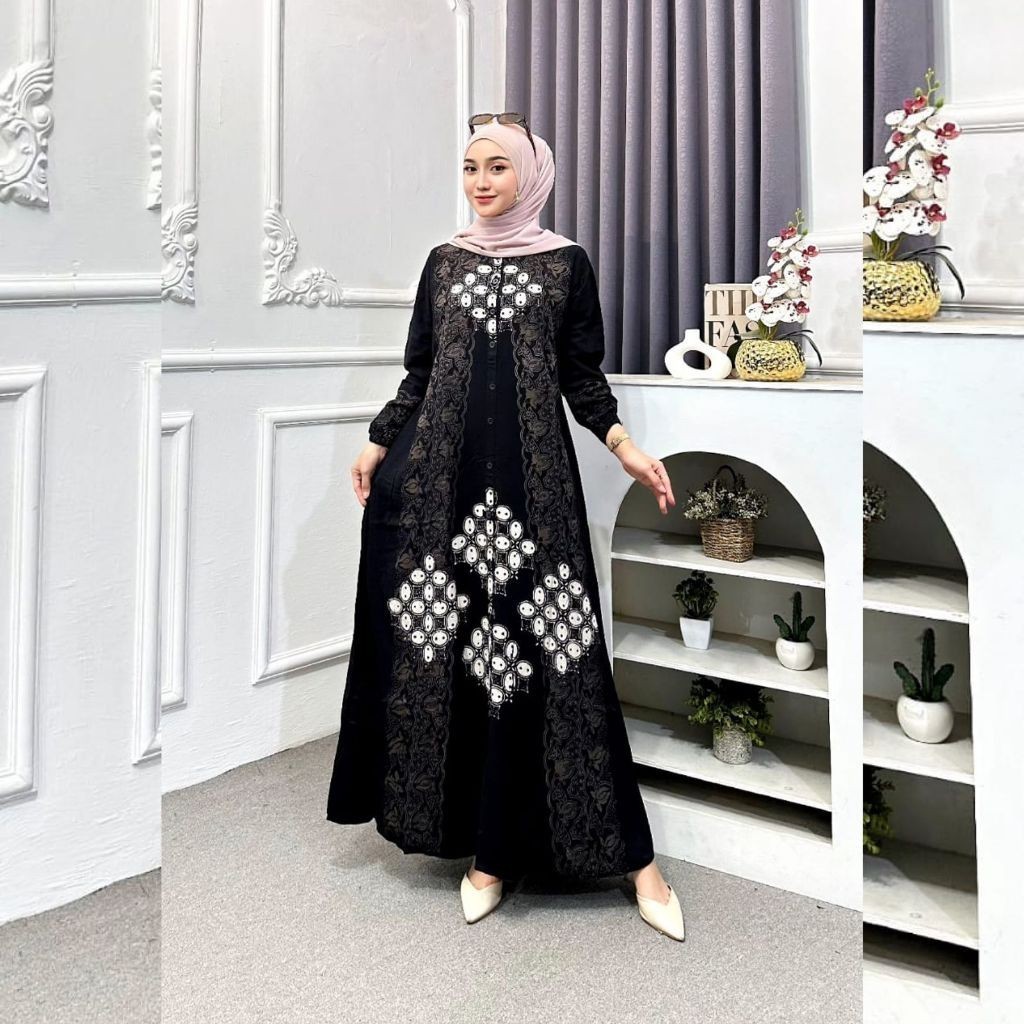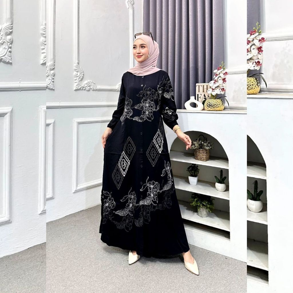 Naya Batik - Gamis Twill Ori Terbaru 2025 Pekalongan Motif Cap Malaman Dress Wanita Muslim Berkualitas Lengan Karet Tali Samping Busui Friendly Tanpa Rempel