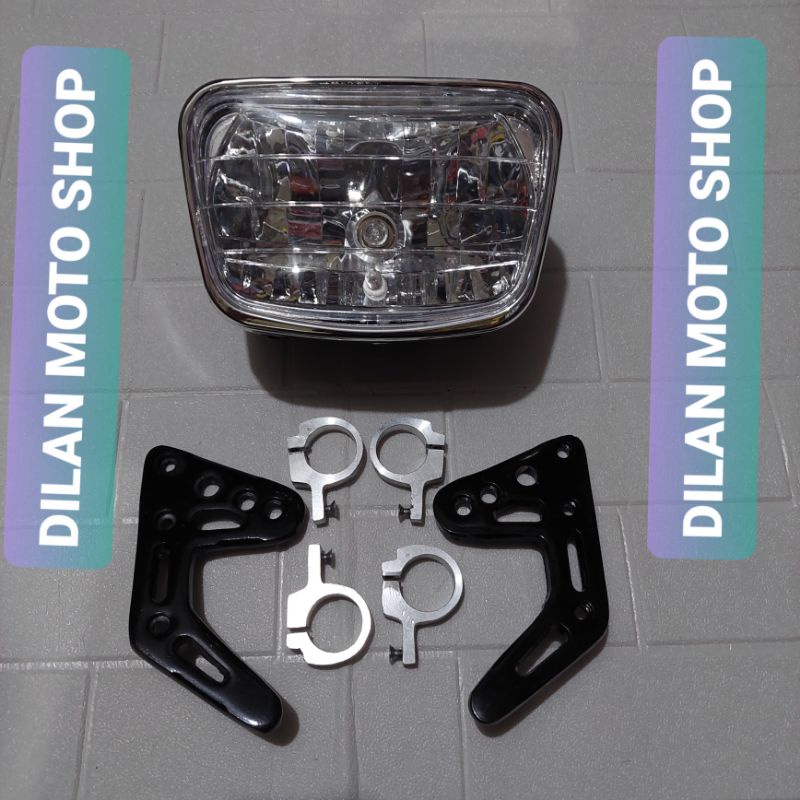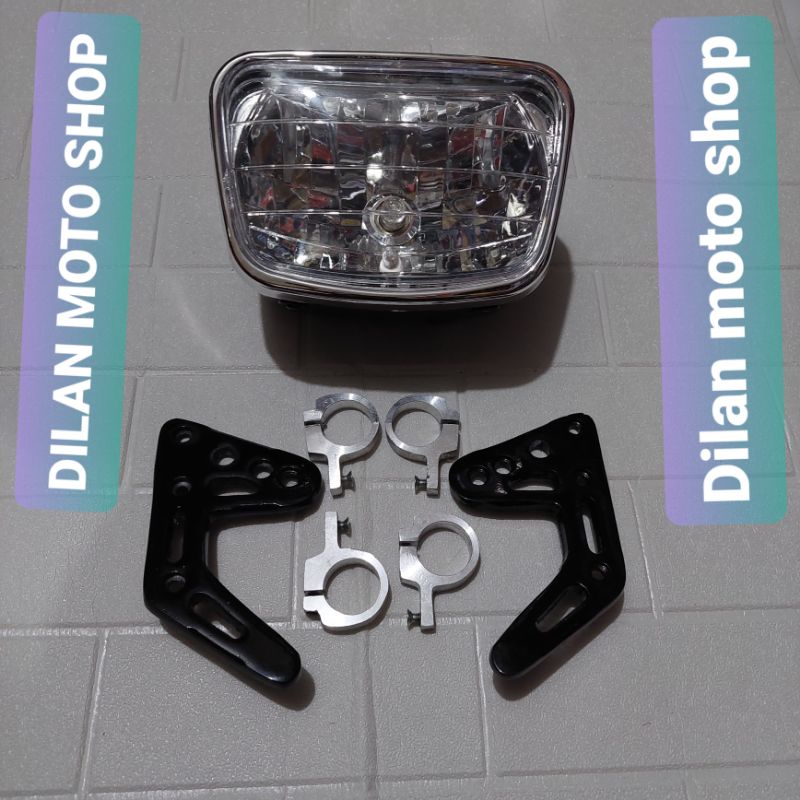 Paket set lampu Depan Rx King set Breket lampu model b.pro Hitam Kaca bening diamon rx king