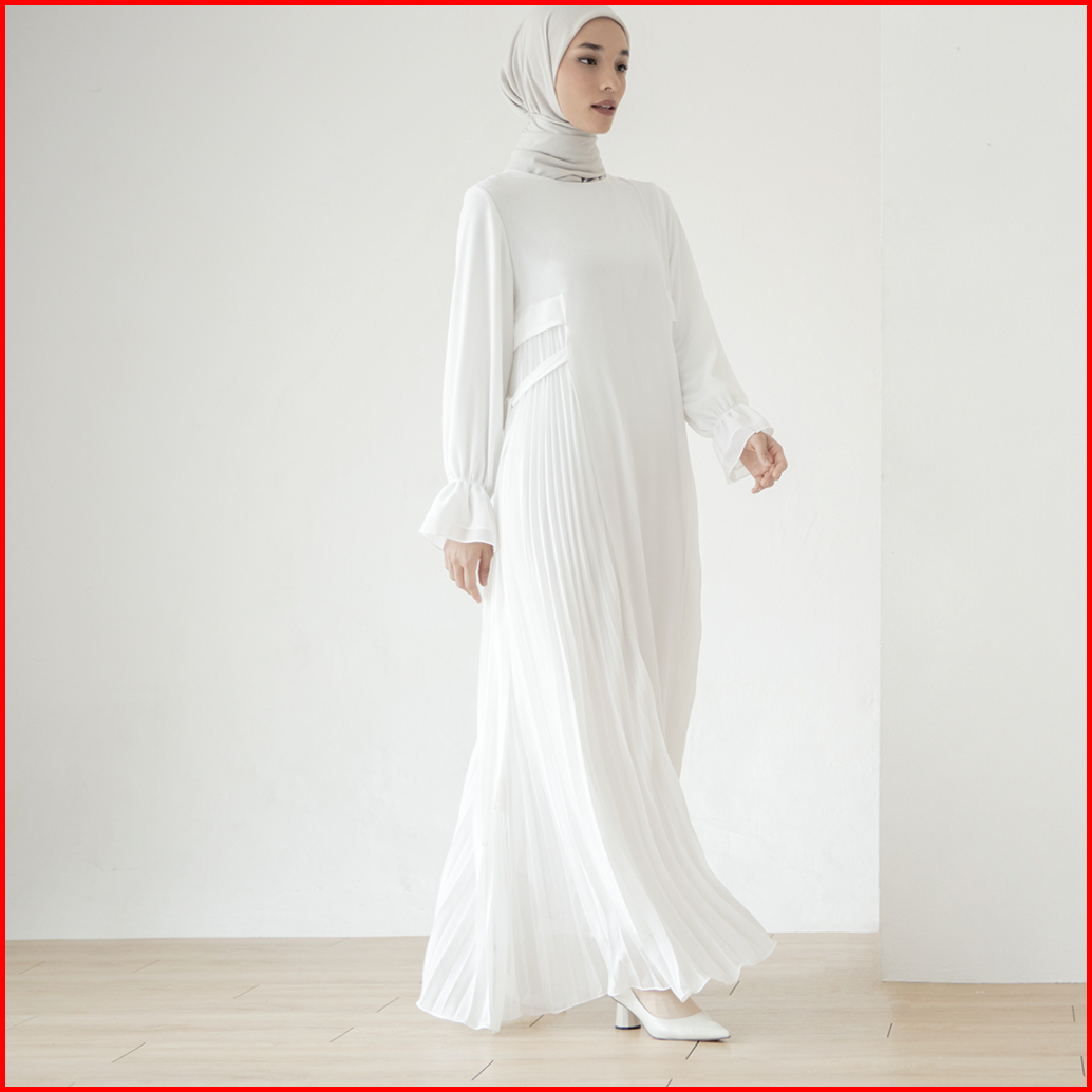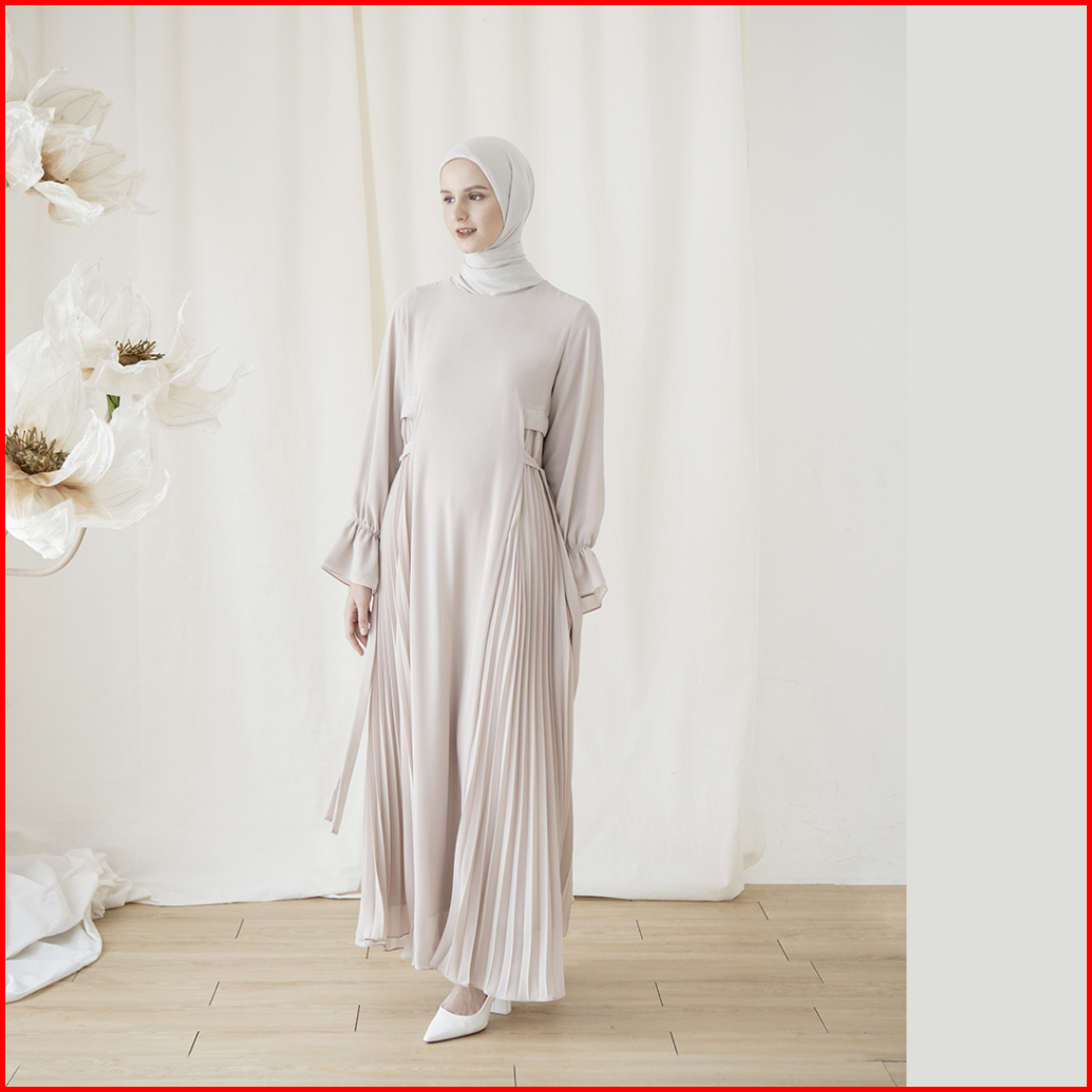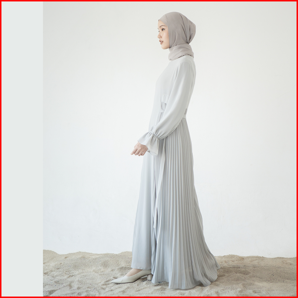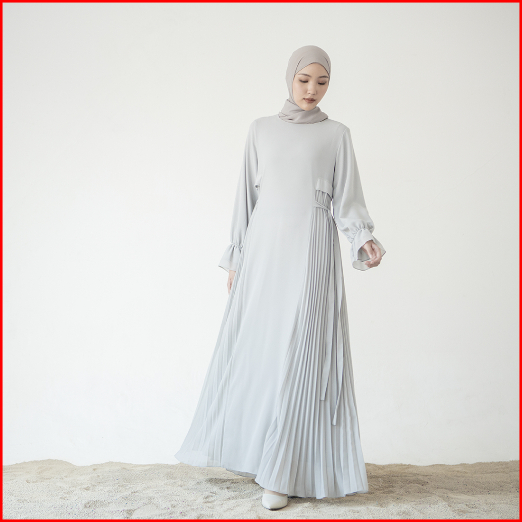 Taima By Aska Label - Gamis Wanita Details Pleats Maxi Dress Panjang Wanita Warna Putih Grey Hitam