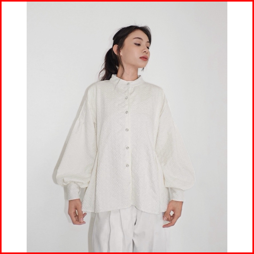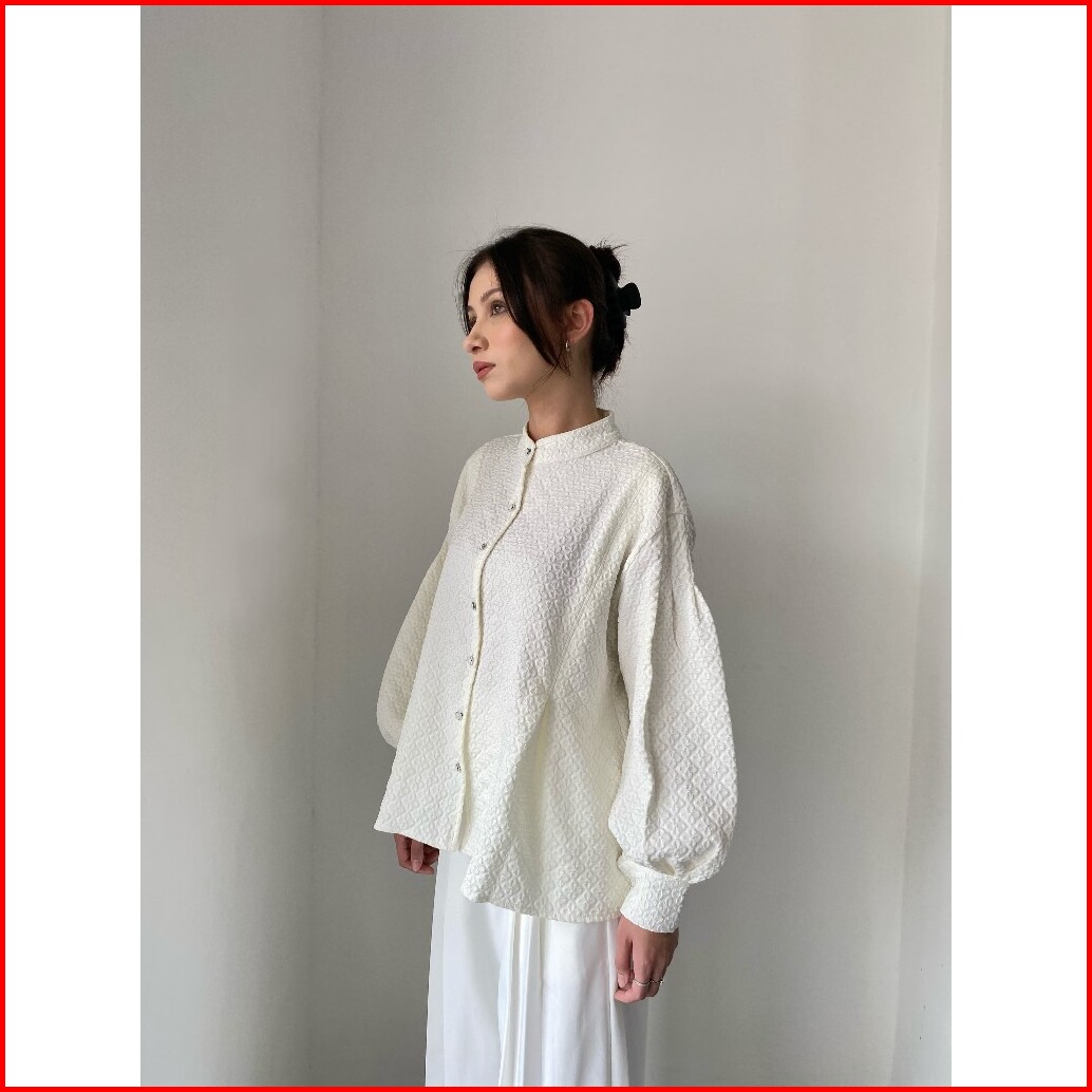 Alaia Top Atasan Wanita Casual Puffy Sleeves Blouse Lengan Balon Textured Fabric Gracias Label