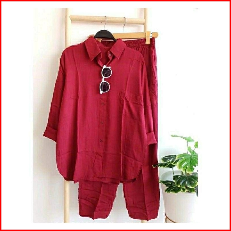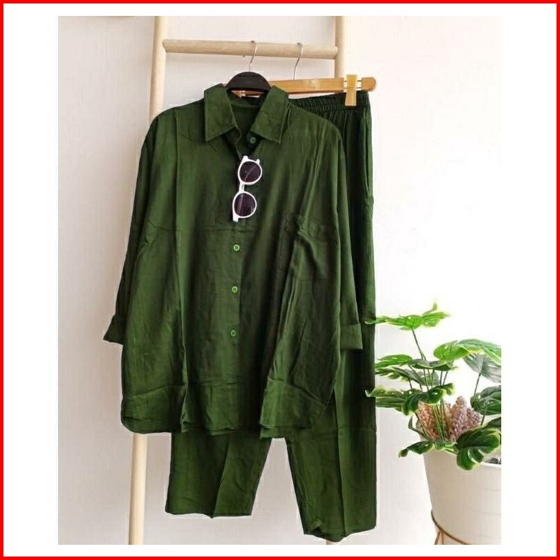 Setelan Wanita One Set Rayon Jumbo Premium Setcel Rayon Polos Lengan Panjang