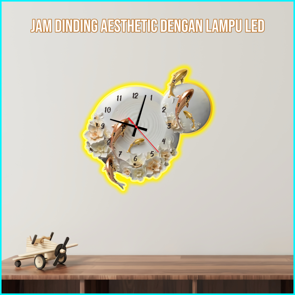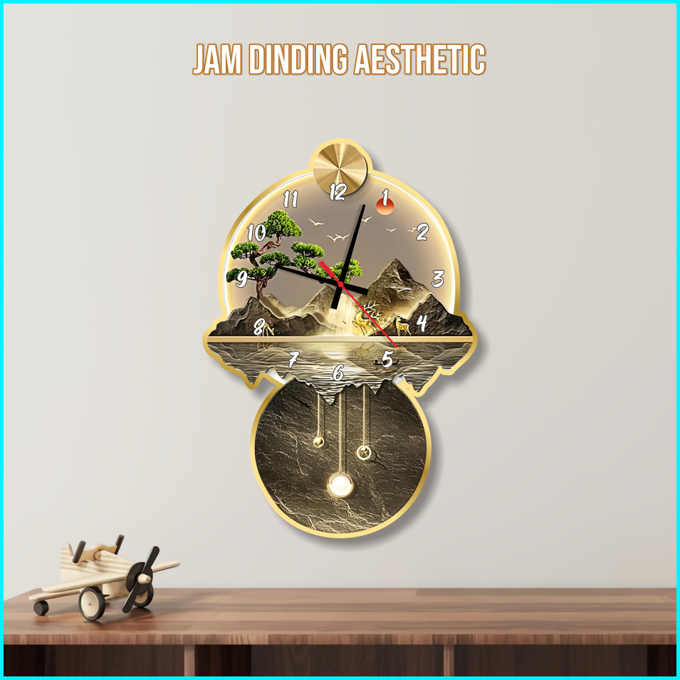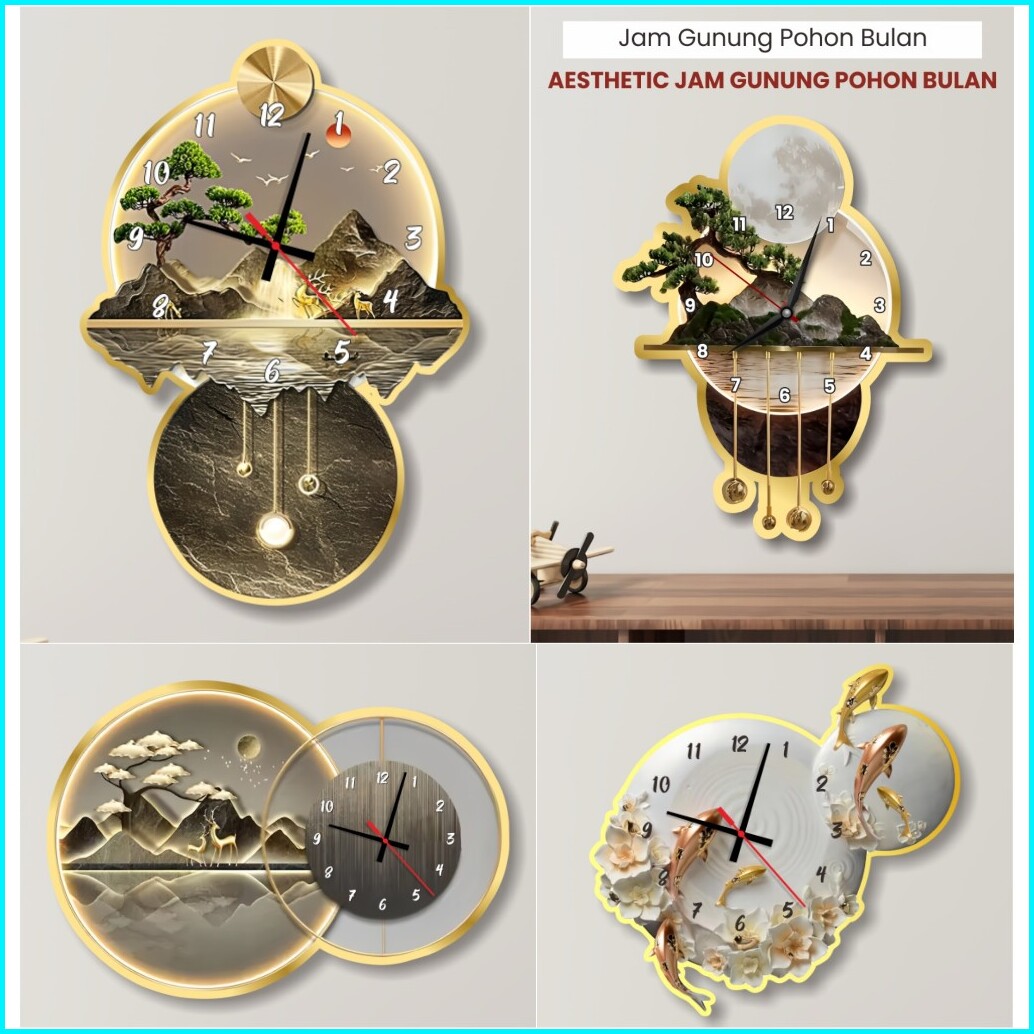 Jam Dinding Aesthetic Lampu Karakter Pohon Gunung Dekorasi Ruang Tamu Kamar Tidur