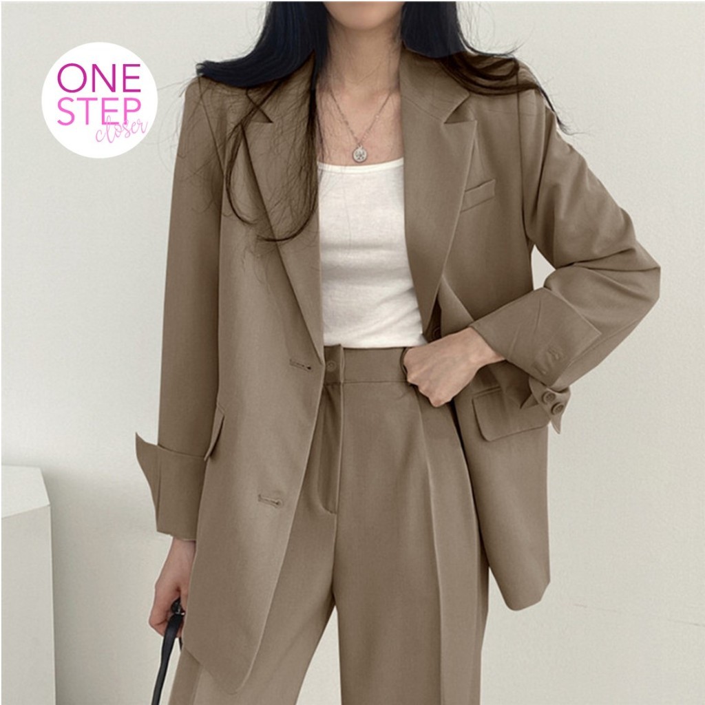 Blazer Celana Set Coklat Kasual Setelan Wanita Baju Kerja Office Premium Korean Style Kekinian S2-009-1006