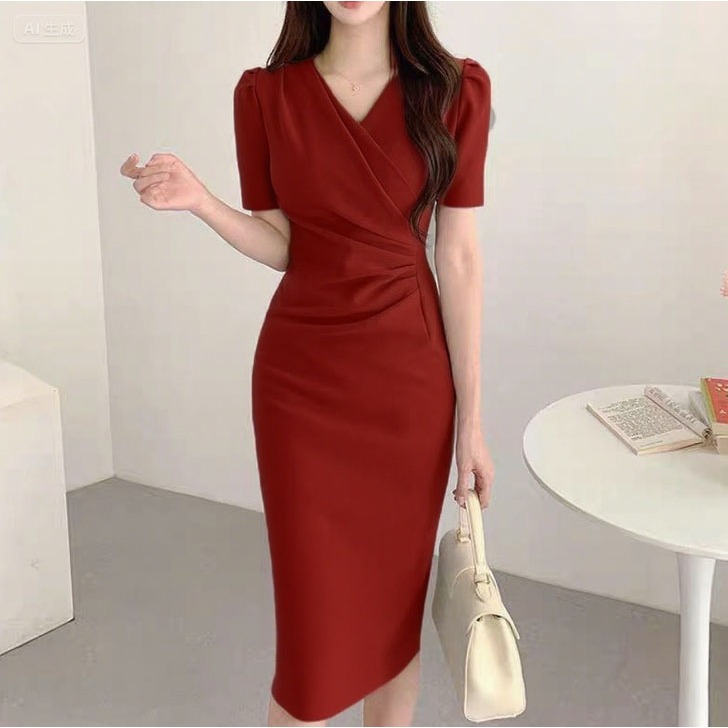 EMITA BLOOM baju dress blue sky korea formal dress wanita kekinian casual dress korean style import gaun pesta mewah elegan lebaran model terbaru 2025