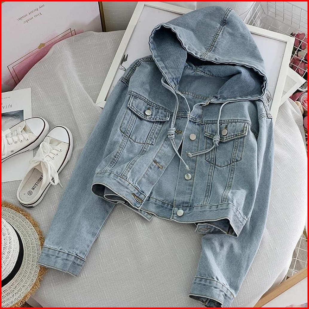 Amelo - Jaket Jeans Wanita Arashi Outwear Nagita Hodie Crop Oversize Korea Style