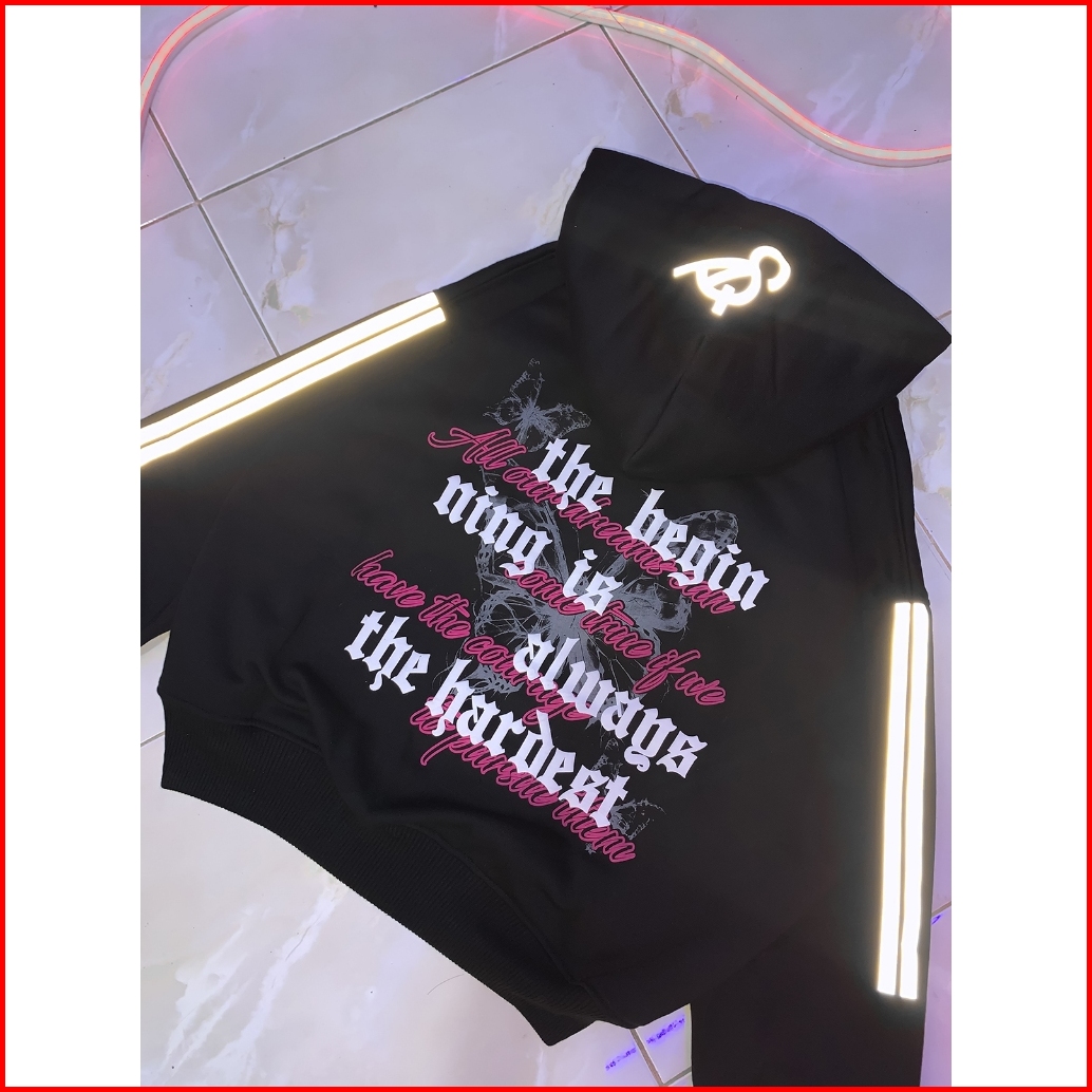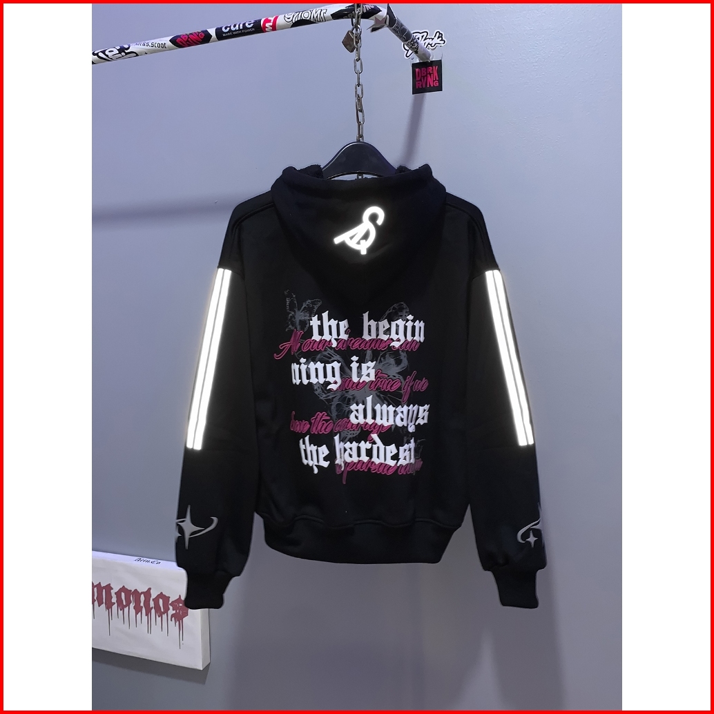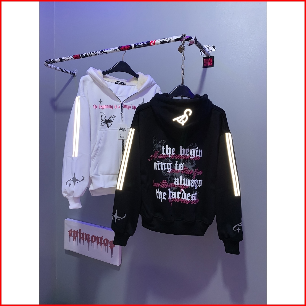 Disa I Hoodie Jaket Boxy Zipper Reflektif Menyala Sablon Foaming