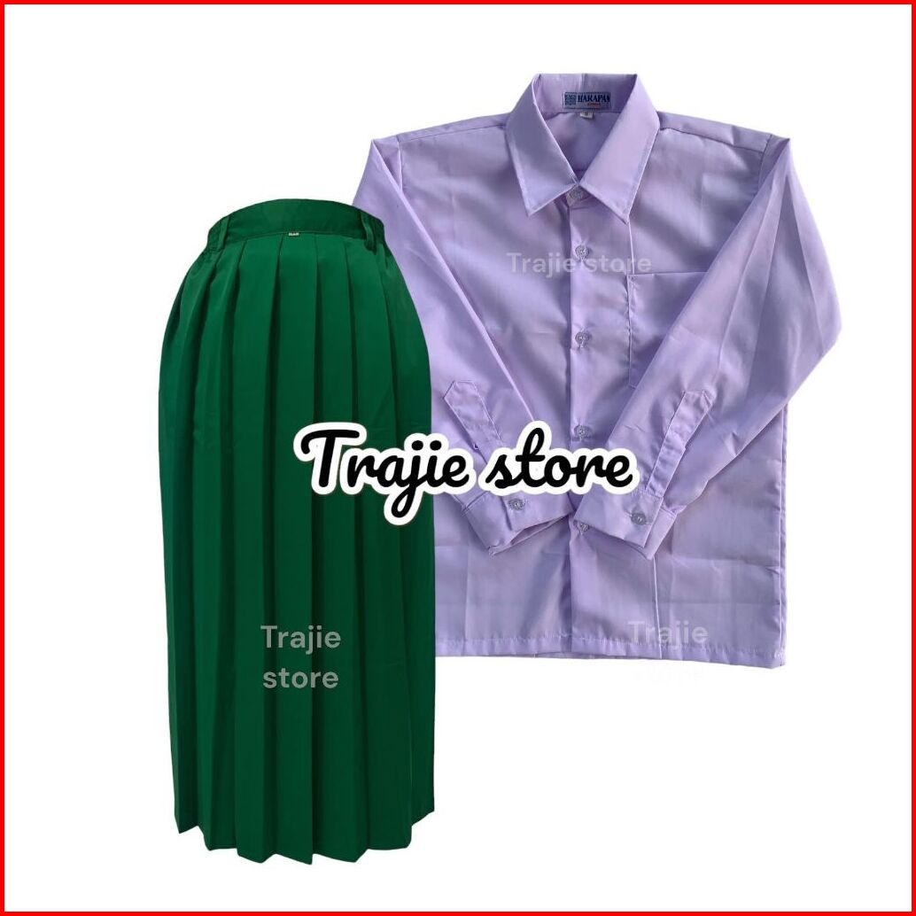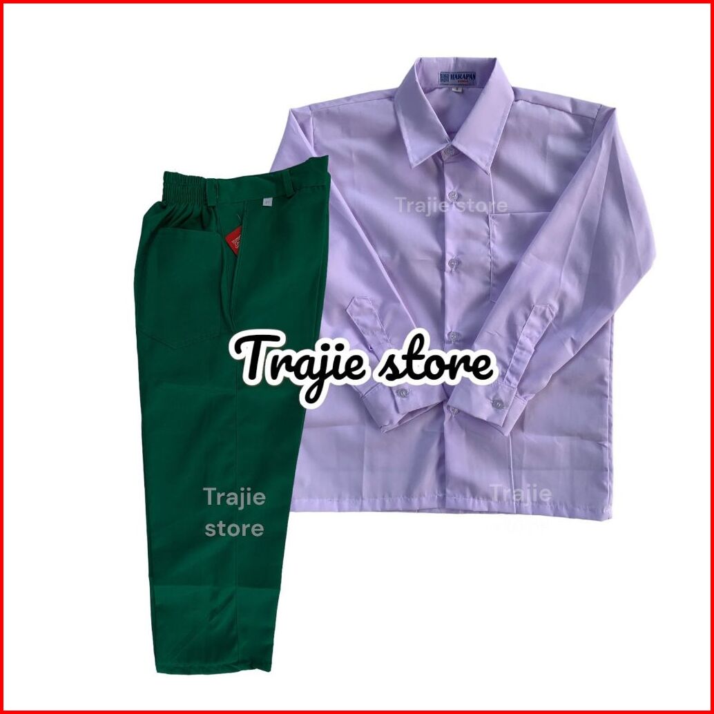Setelan Seragam Sekolah Sd Mi Putih Hijau Laki-laki Perempuan Baju Celana Rok Rempel Lengan Panjang