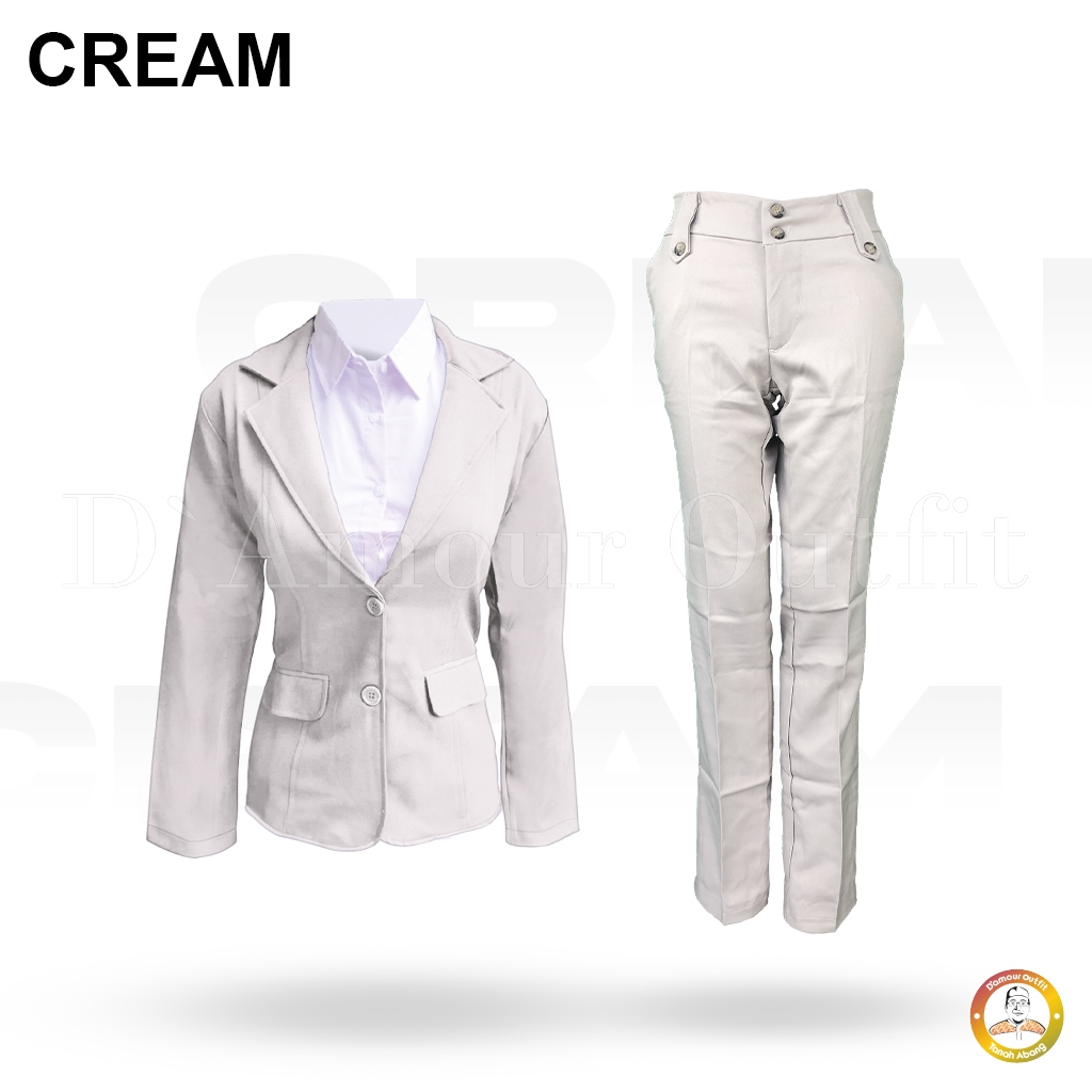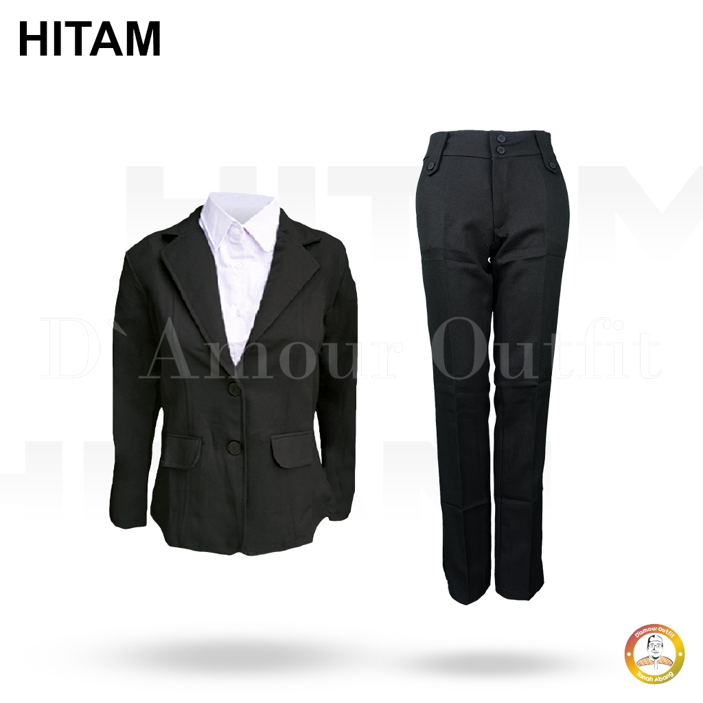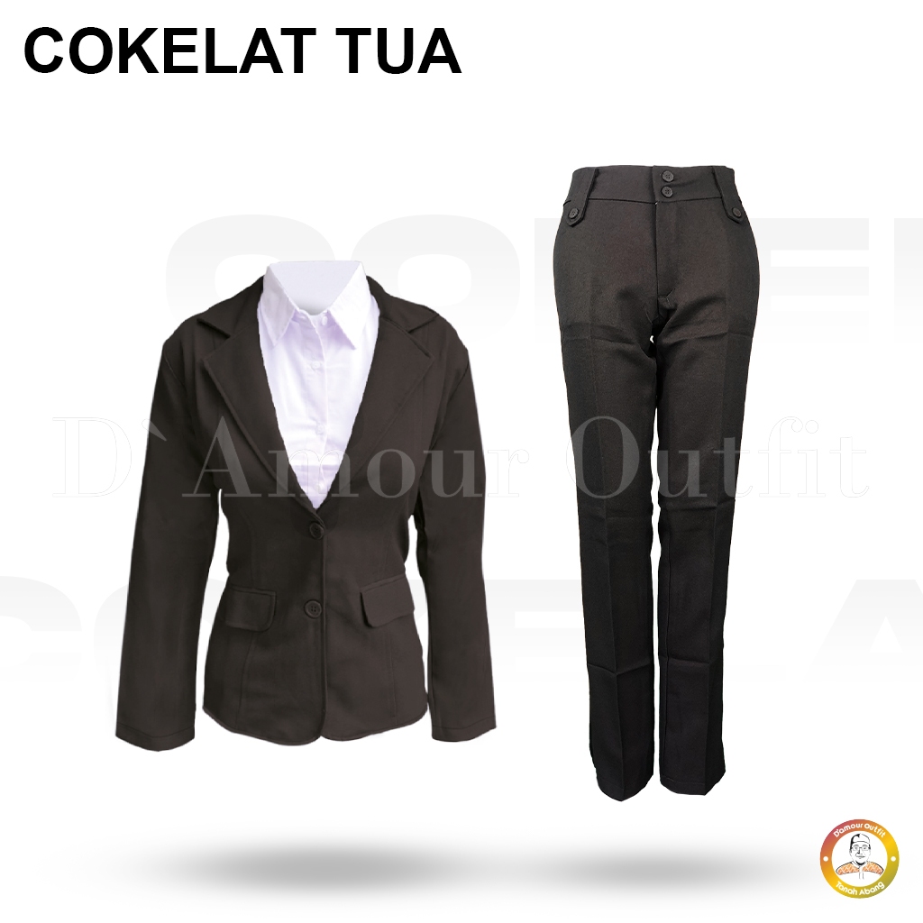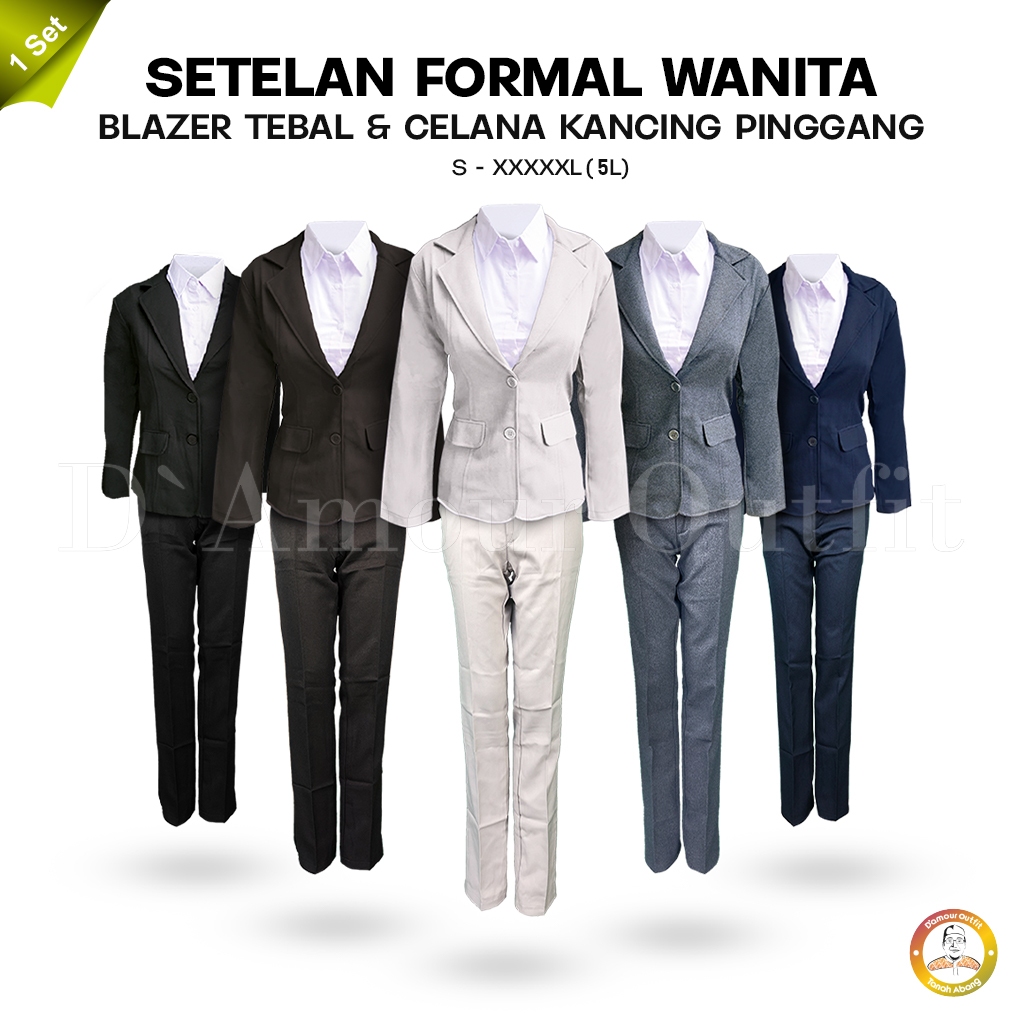 Setelan Pakaian Kerja Formal Blazer Plus Celana Kantor Slim Fit Variasi Kancing Pinggang Wanita Bahan Gabardine One Set