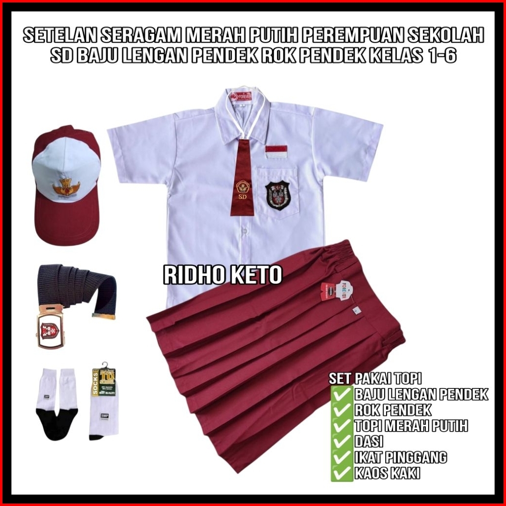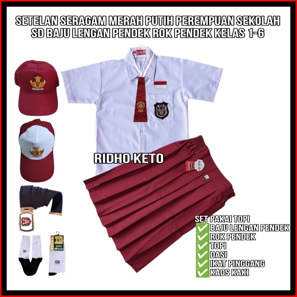 Setelan Seragam Merah Putih Sekolah Sd Anak Perempuan Baju Putih Lengan Pendek Rok Merah Pendek Kelas 1-6