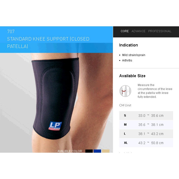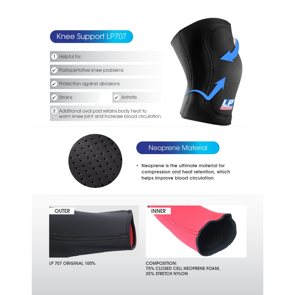 LP Support Standard Knee With Pad LP-707 Hitam