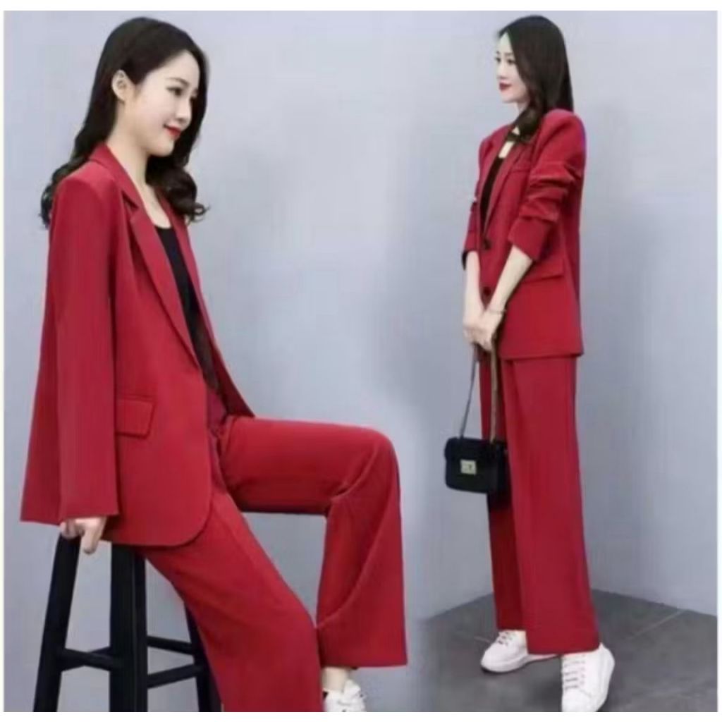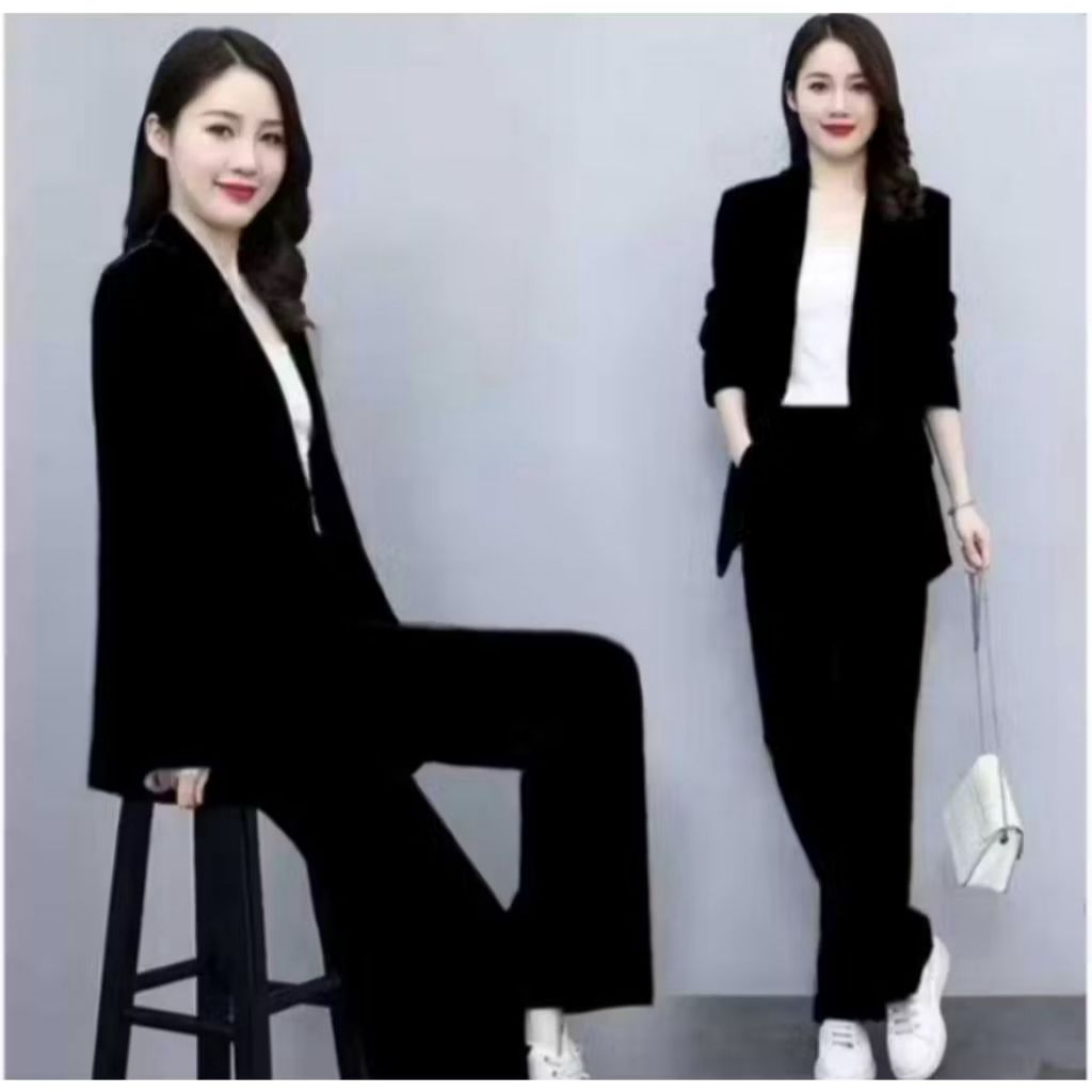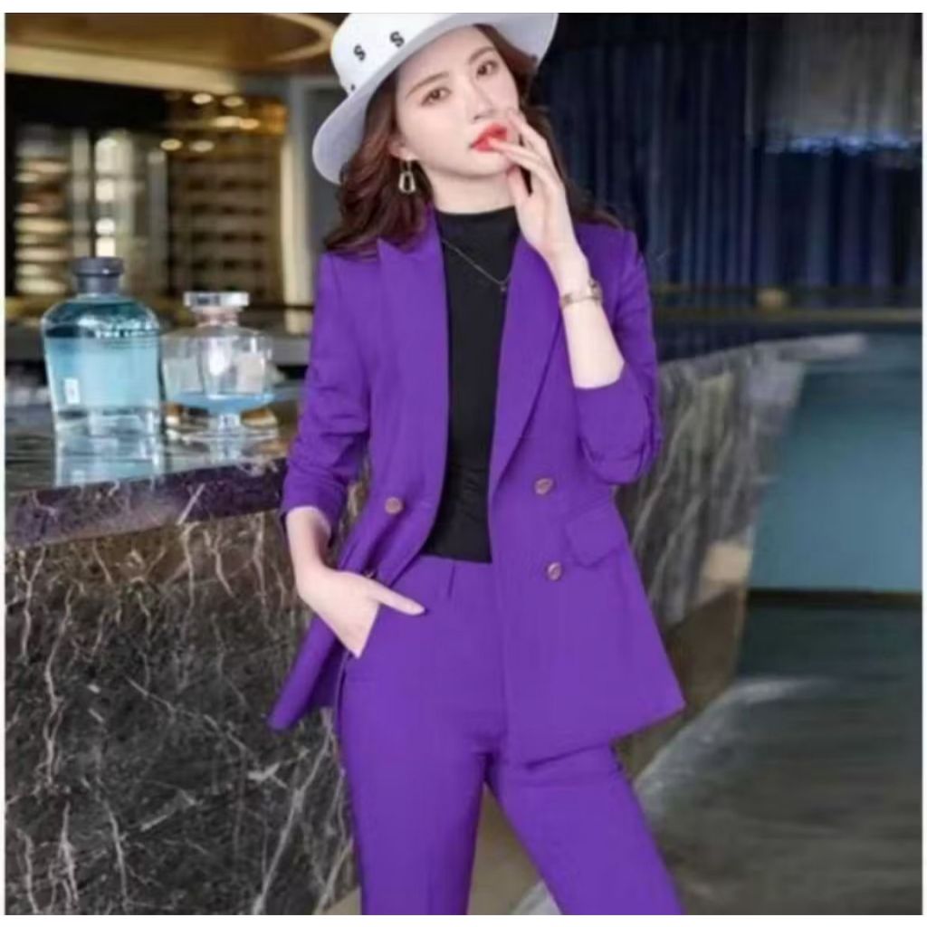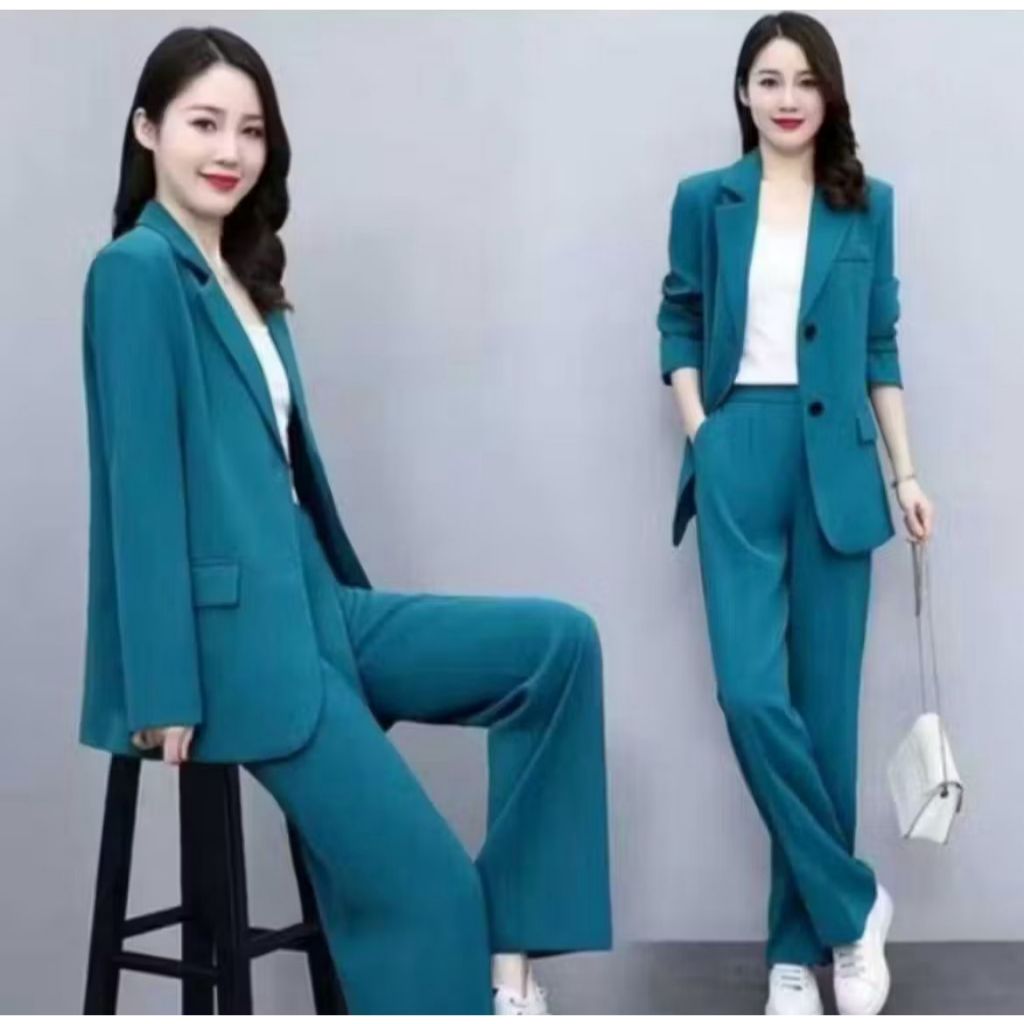 Tearu Paket Setelan Jas Blazer Formal dan Celana Panjang Wanita Kancing 2 Kekinian Casual Size XS Sampai XXXXL