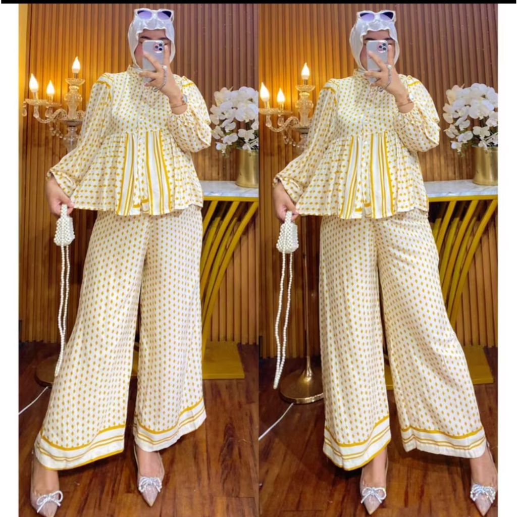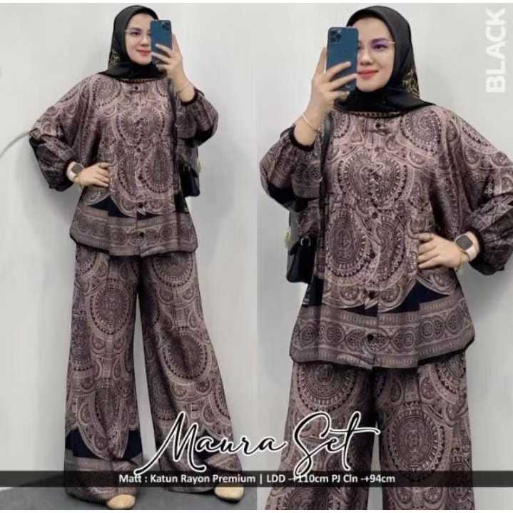 Maura Set Rayon Jumbo LD 120 Busui Friendly Lengan Balon Celana Kulot // Set Pajamas Kekinian//Setelan Wanita One Set