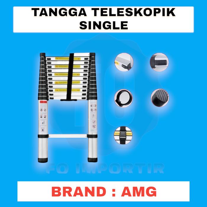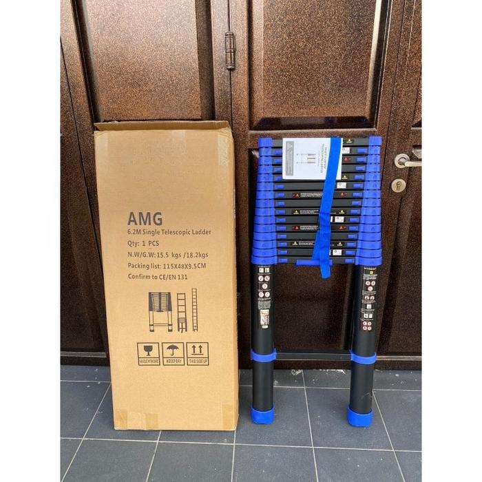 TANGGA LIPAT ALUMINIUM TELESKOPIK 6M SINGLE TELESCOPIC LADDER 6 METER - HITAM BIRU