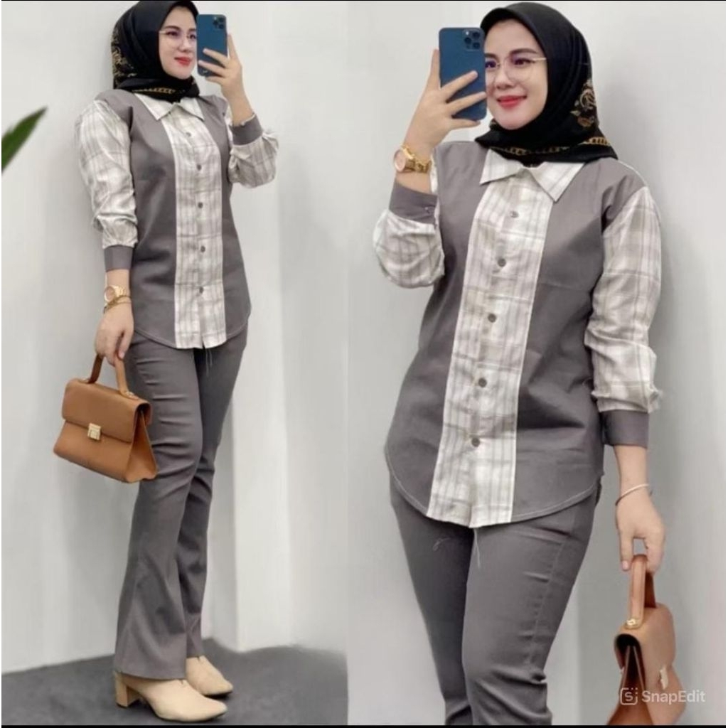 Set Celana Chino Mik Haruka Premium // One Set Wanita Dewasa // Stelan Panjang // Sctreach