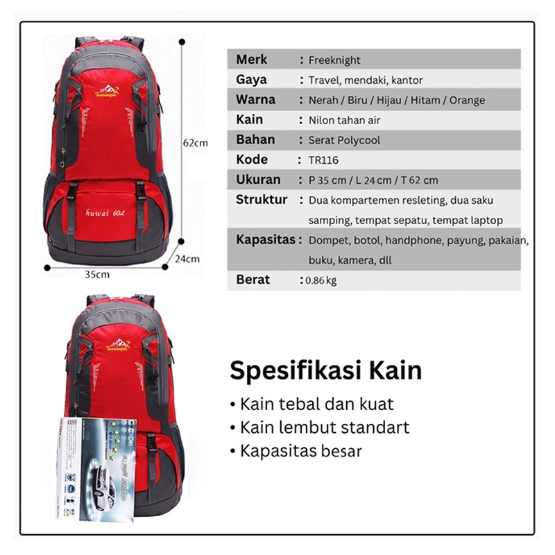 LH51 Tas Ransel Gunung 60L Kapasitas Besar Camping Carrier Backpack Jumbo Travel Hiking 116 MKT