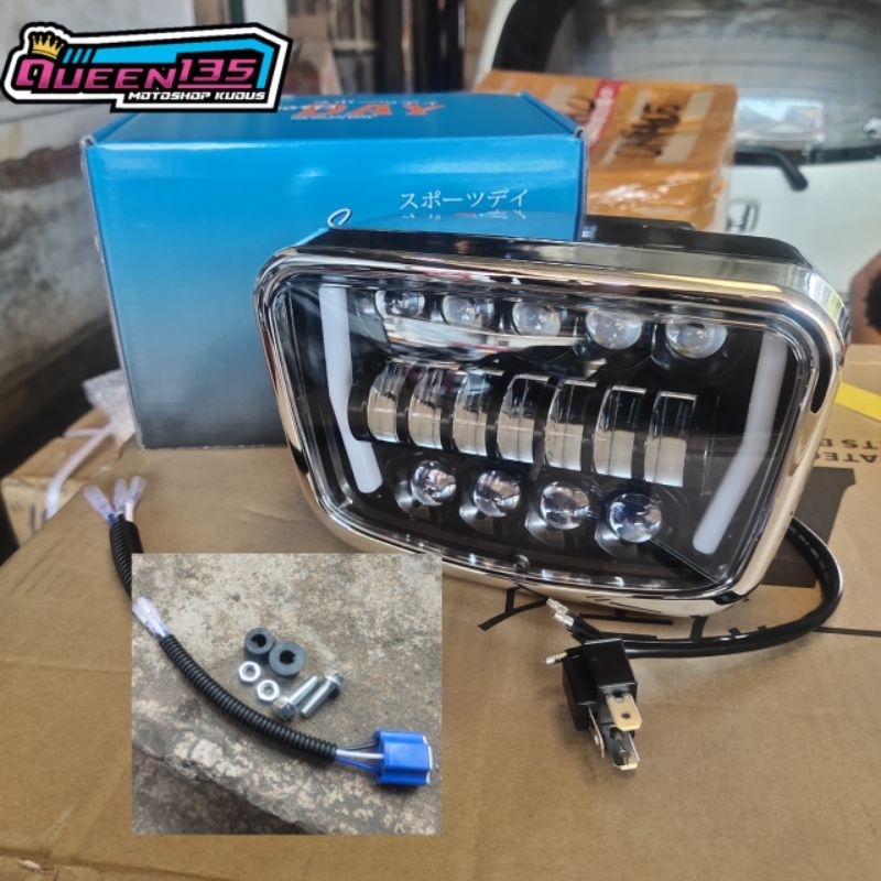 Lampu depan LED RX KING NEW OVAL | DAY | model LTC | list hitam murah | sudah ada lampu senja dan sein | LIST CRUM | super terang