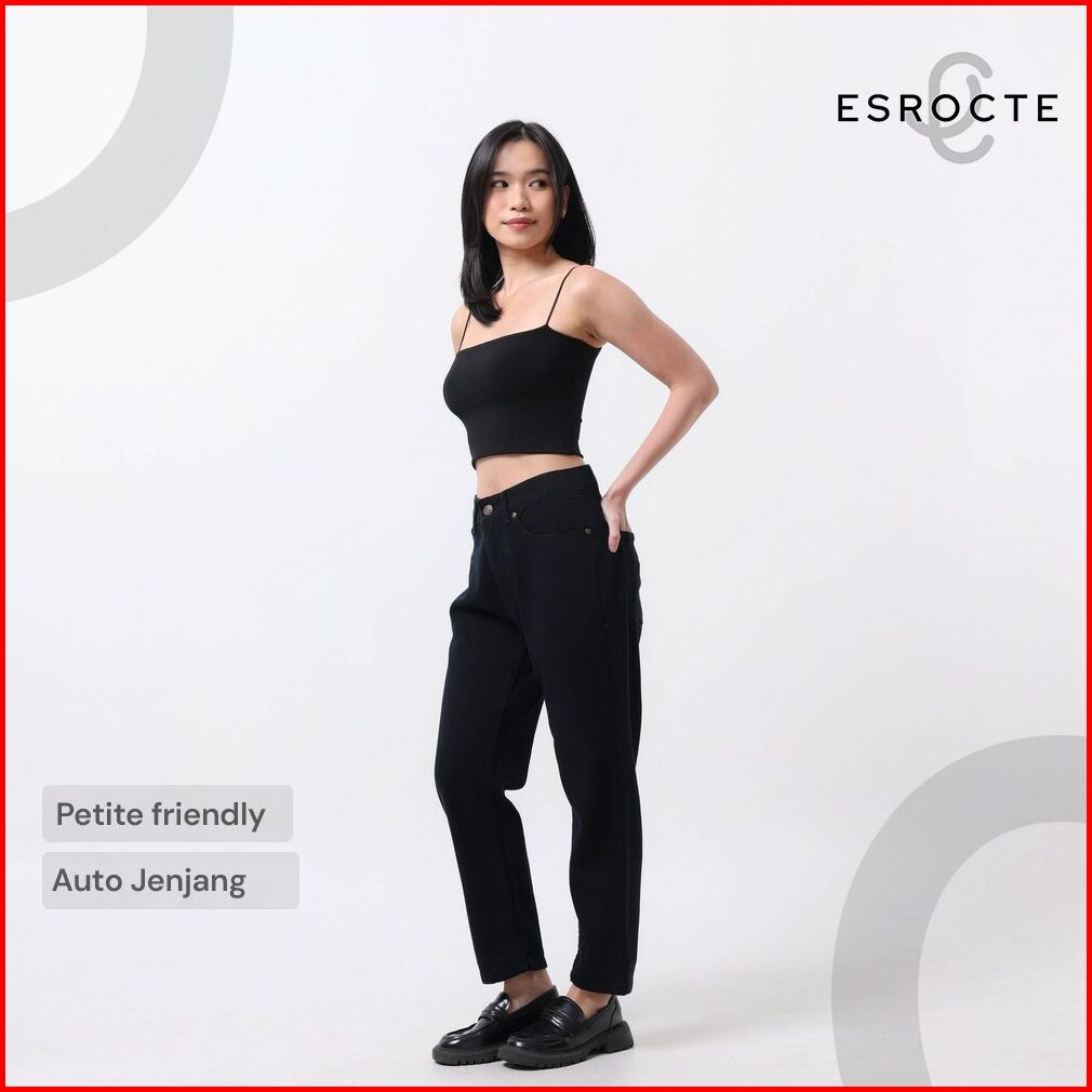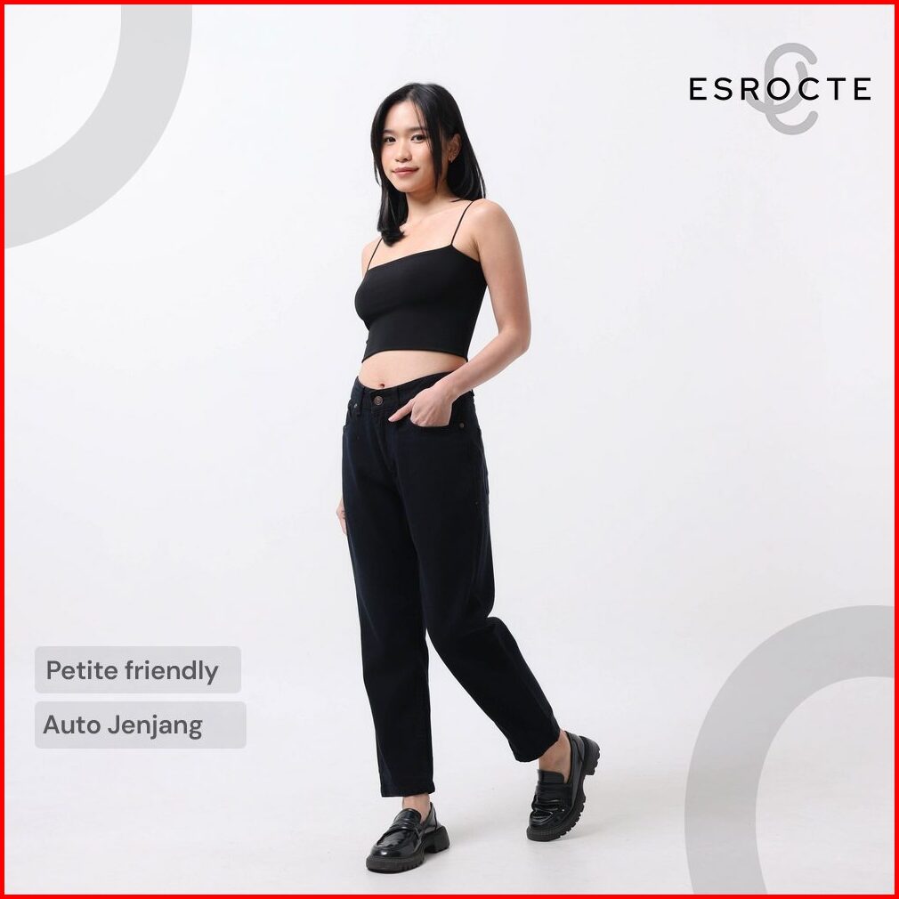 Esrocte Aurea Pants Celana Mom Jeans High-waist Wanita Hitam 2638 New Size