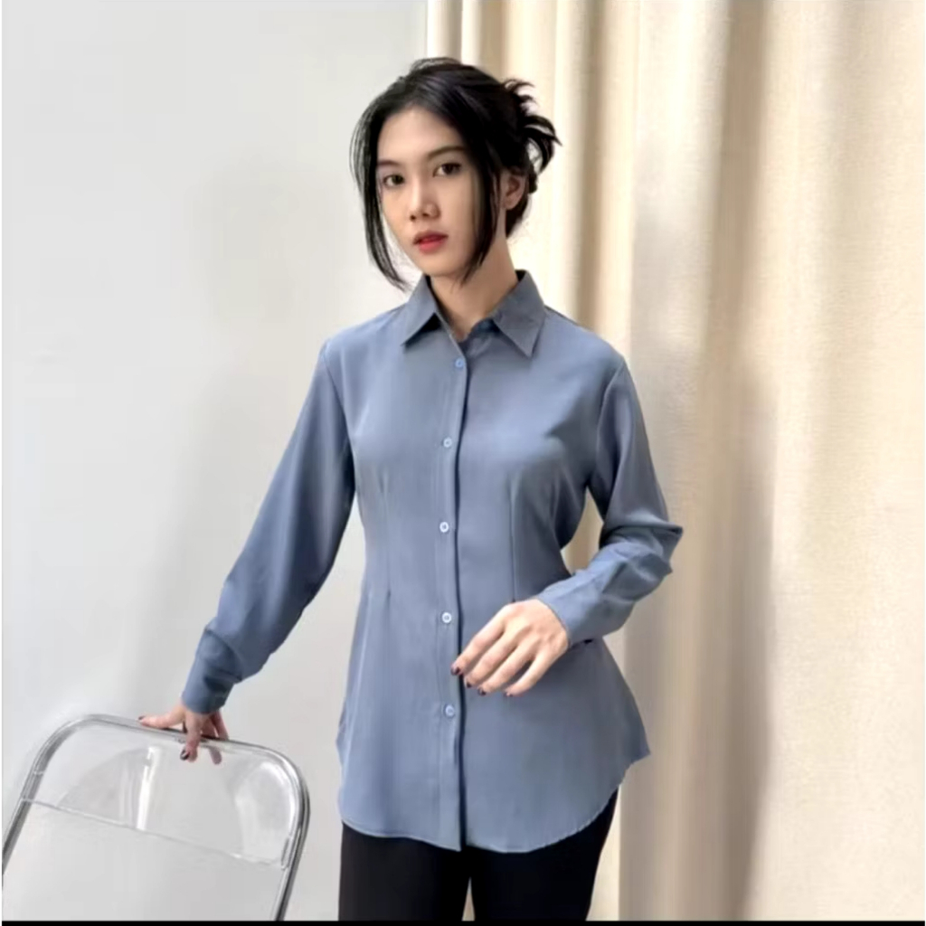 Kemeja Wanita Slim Fit Cewek Kerja Kantoran Kuliah Blouse Polos Atasan Lengan Panjang Kekinian Kemeja Polos Kerja Premiu