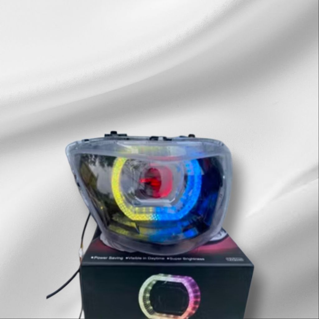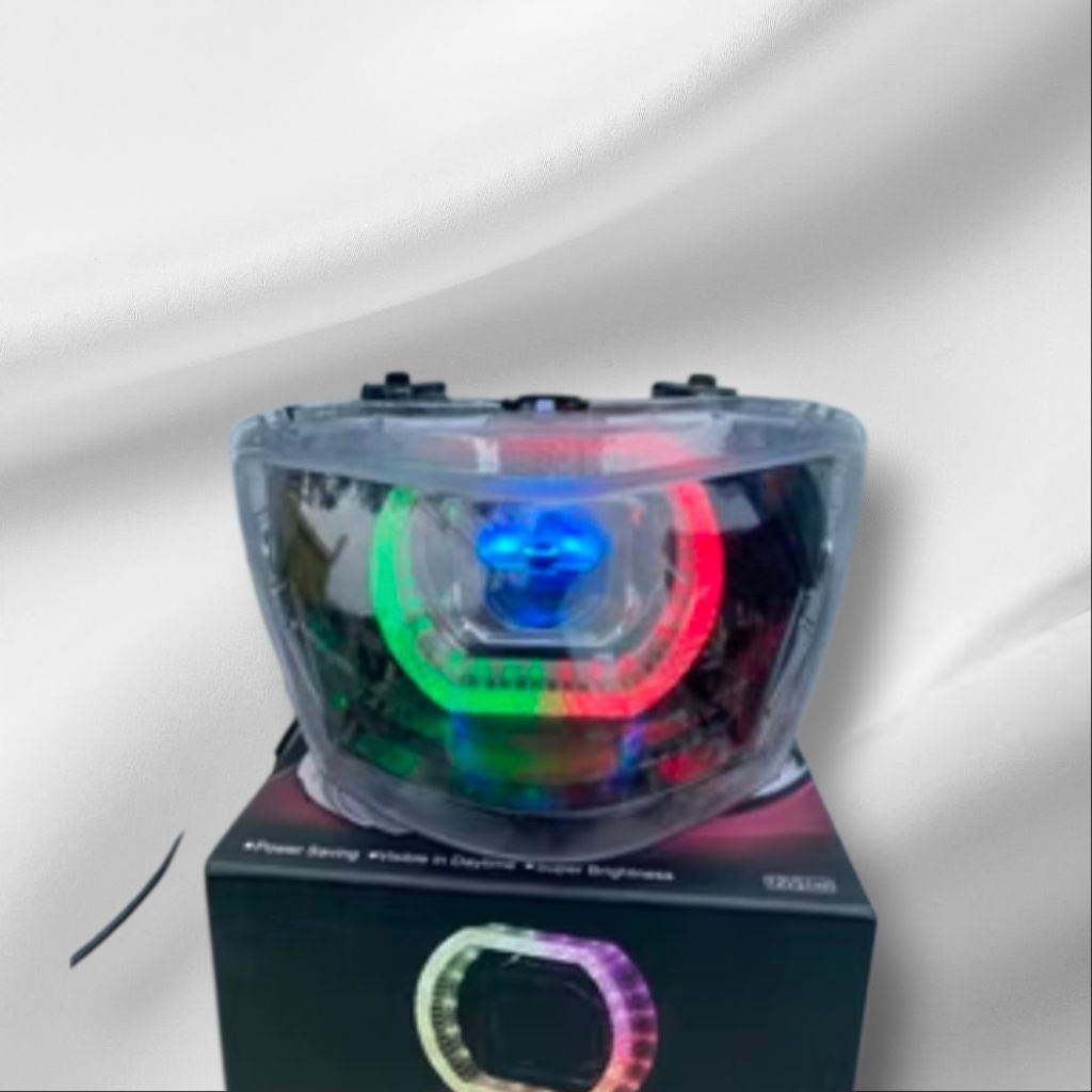 REFLEKTOR LAMPU DEPAN MIO J BILLED BILED MATRIX X1 RGB AKRILIK KRYSTAL GANTI WARNA RING VIA BLUETOOTH SUPER TERANG