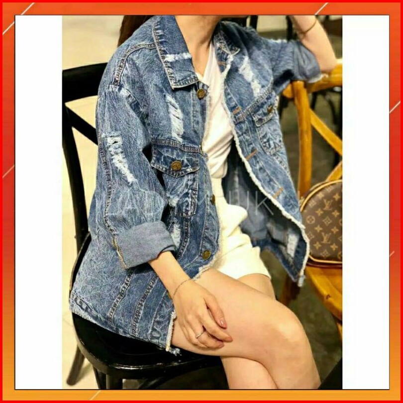 Jaket Jeans Cewek Wanita Oversize 8186 Acid Ripped