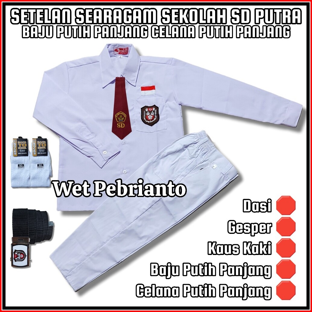 Setelan Seragam Sekolah Sd Putih - Putih Laki Laki Baju Putih Lengan Panjang Celana Putih Panjang