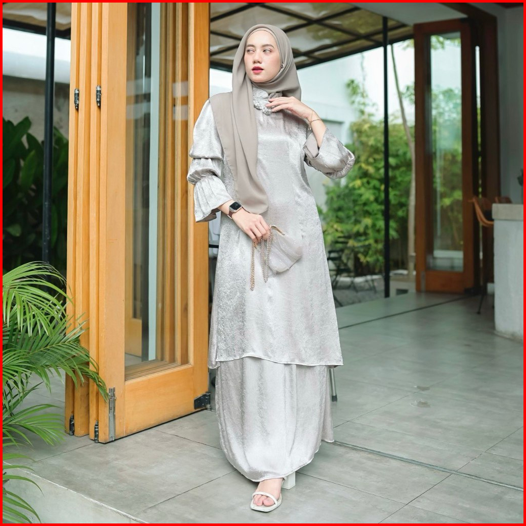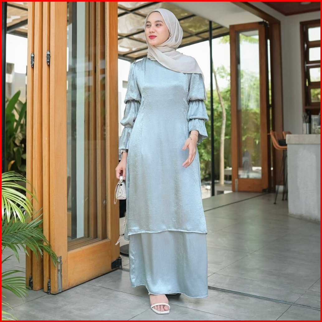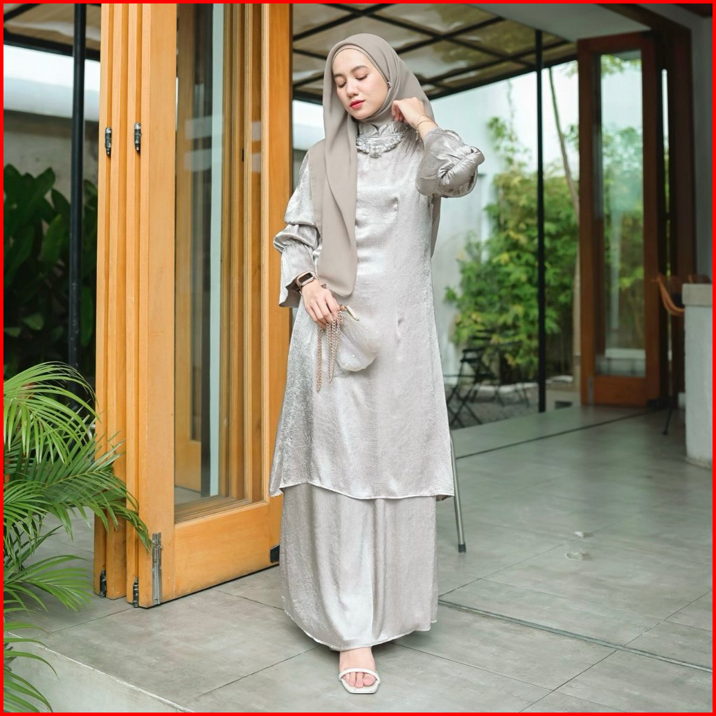 Proudyhijab - Aliya Set Setelan Atasan Tunik Rok Baju Malaysia Setelan Kondangan Simple Elegan Glossy Wanita Kekinian Bu