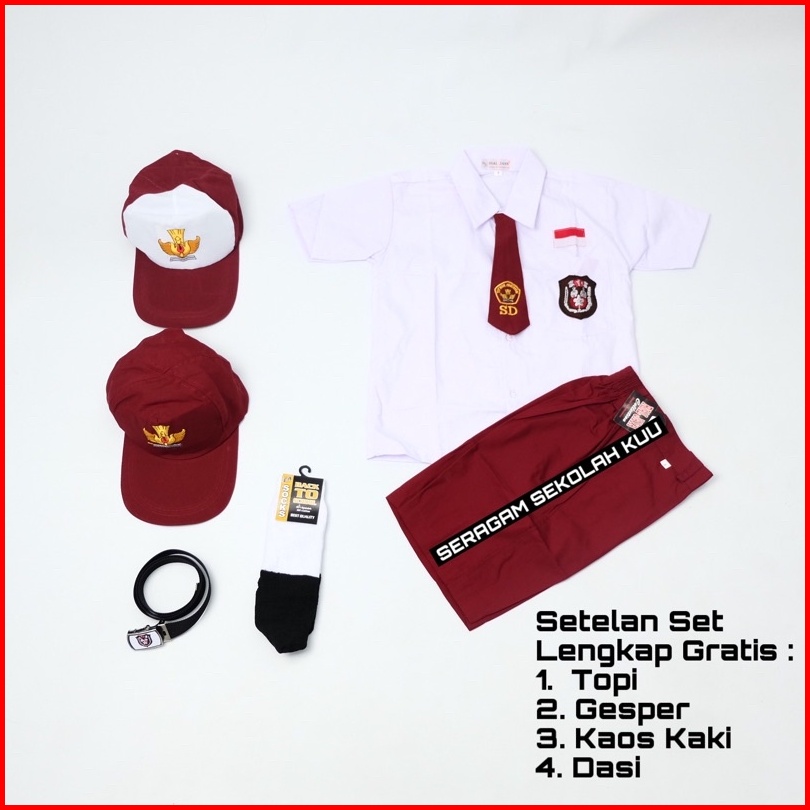 Setelan Super Lengkap Seragam Sekolah Sd Laki Baju Pendek Celana Pendek Cowok