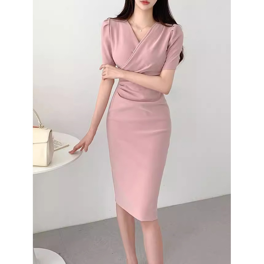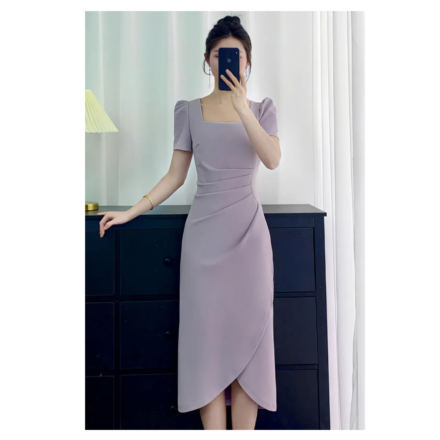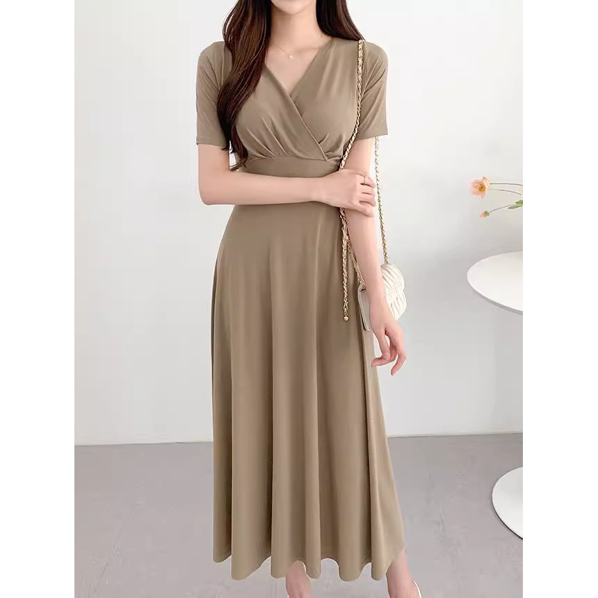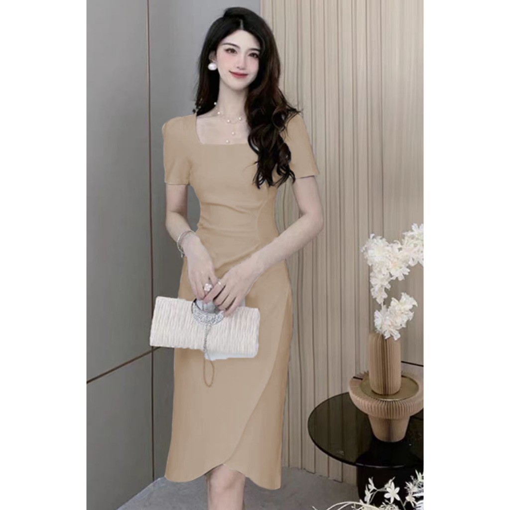 Dress Biru Pantai Wanita Midi Dress Polos Kekinian Terbaru 2025 Korea Dress Kondangan Simple Elegant Casual Dress