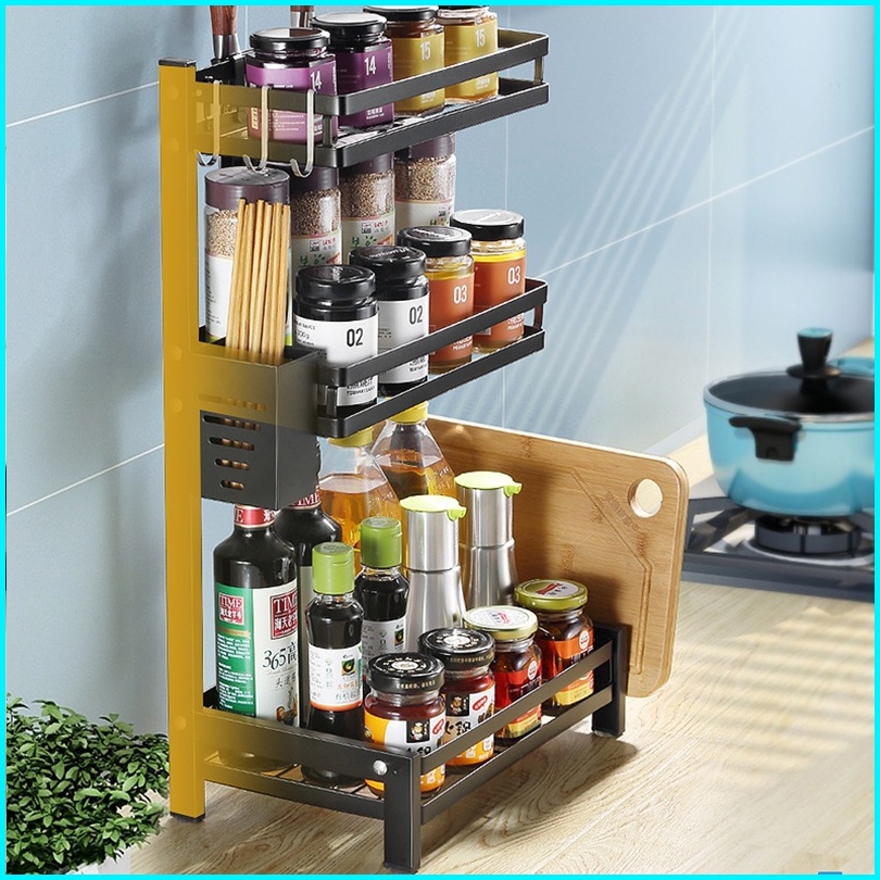 Rak Bumbu Dapur Penyimpanan Bumbu Penyelenggara Rak Susun Stainless Steel 2 3 Tier Rak Botol Rempa