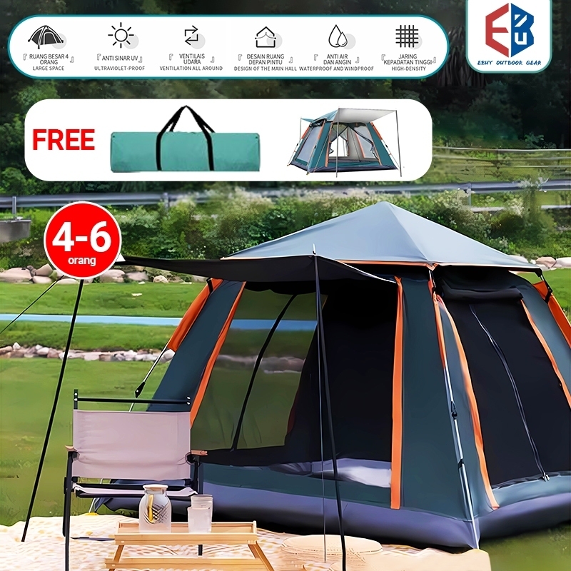 Tenda Camping Lipat Portable Kapasitas 4-6 Orang tenda camping otomatis tenda Outdoor Waterproof Anti Air