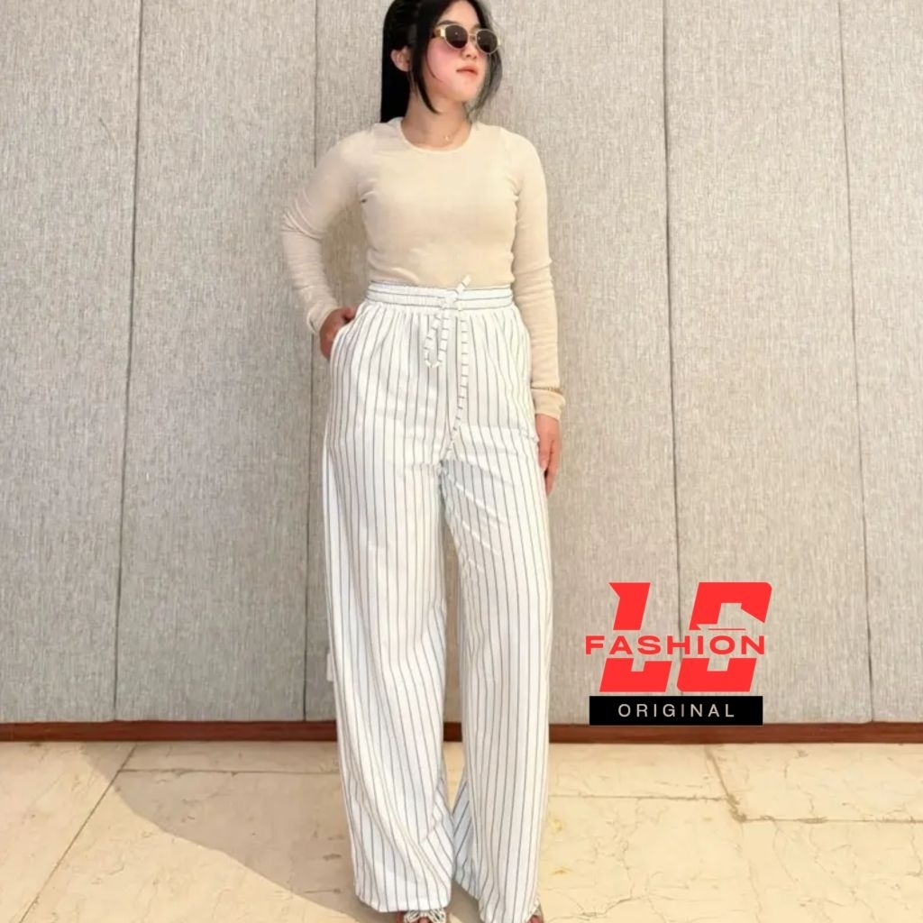 Everyday Pants - Kulot Stripe Pants Korean Style Highwaist Celana Kulot Wanita Kekinian Fashionable Kulot Wanita Jumbo