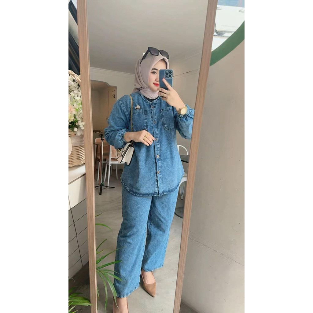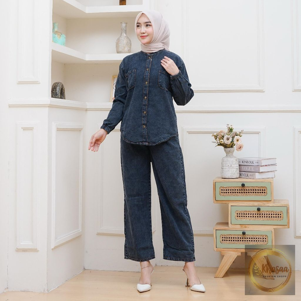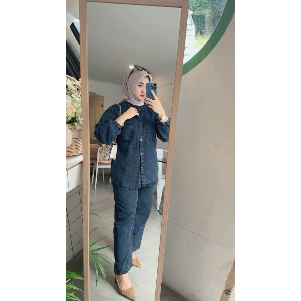 ONESET Jeans Blackwash Atasan dan Celana Terbaru 2025 Jumbo Kekinian / Setelan Wanita