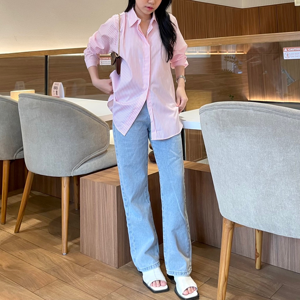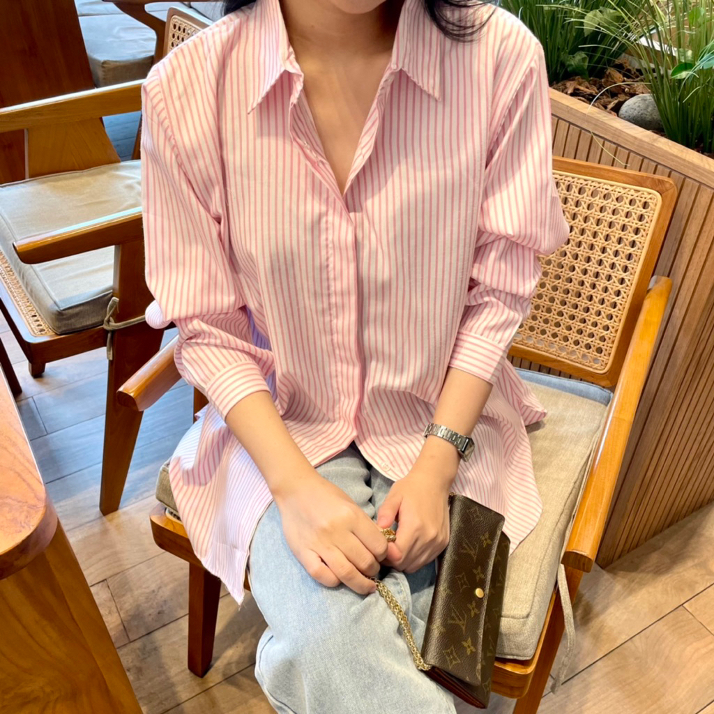 Ara Shirt Kemeja Wanita Garis-Garis Katun Polyester
