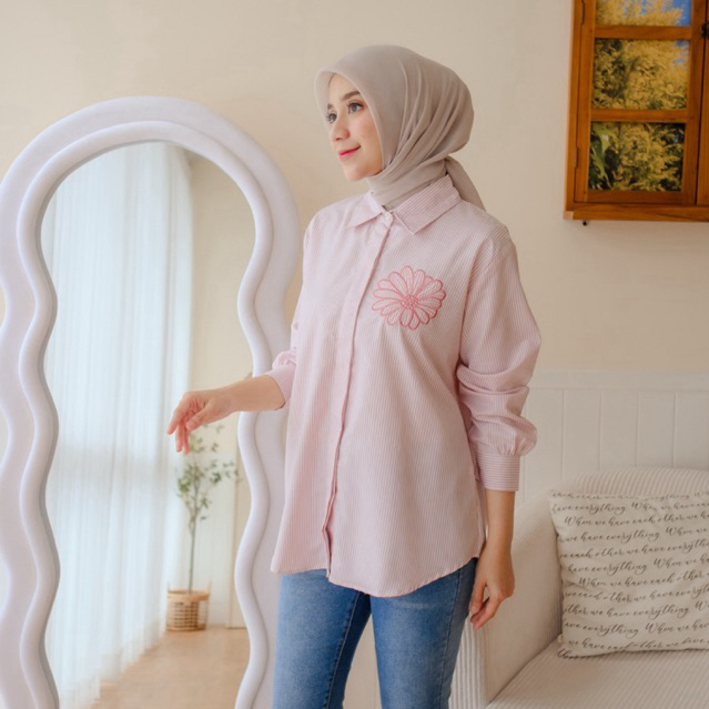 Odeca | Kemeja Floral Stripe | Kemeja Floral Polos | Atasan Wanita