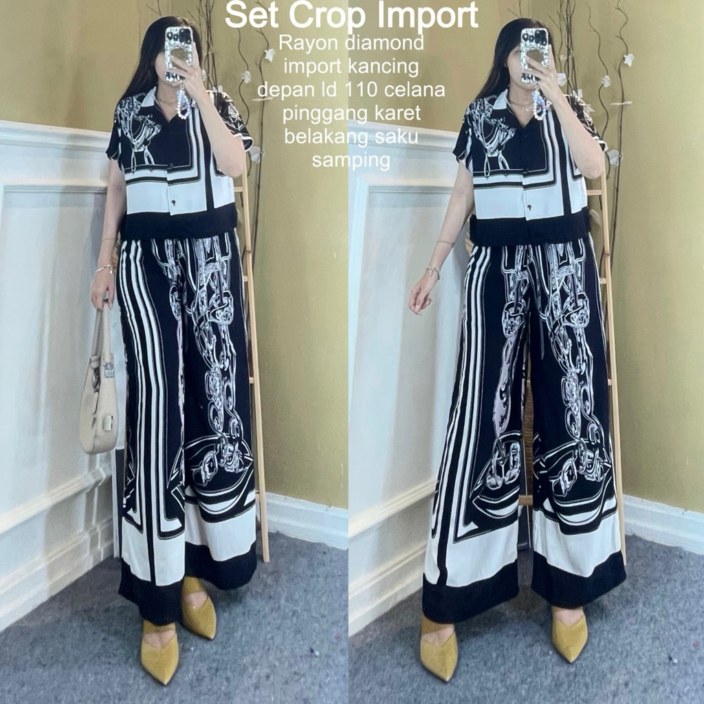 NEW ONE SET CROP WANITA RAYON CELANA HIGH WAIST NAYAMN PAKAI