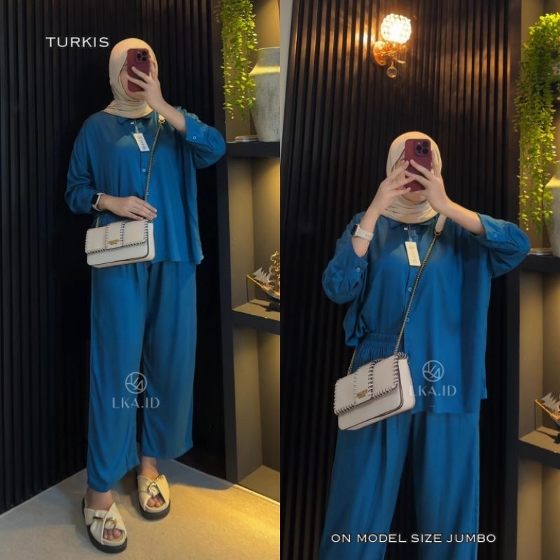 LKA One Set Polos Oversize Rayon Twill Premiun Setelan Kemeja Kulot Wanita Kekinian