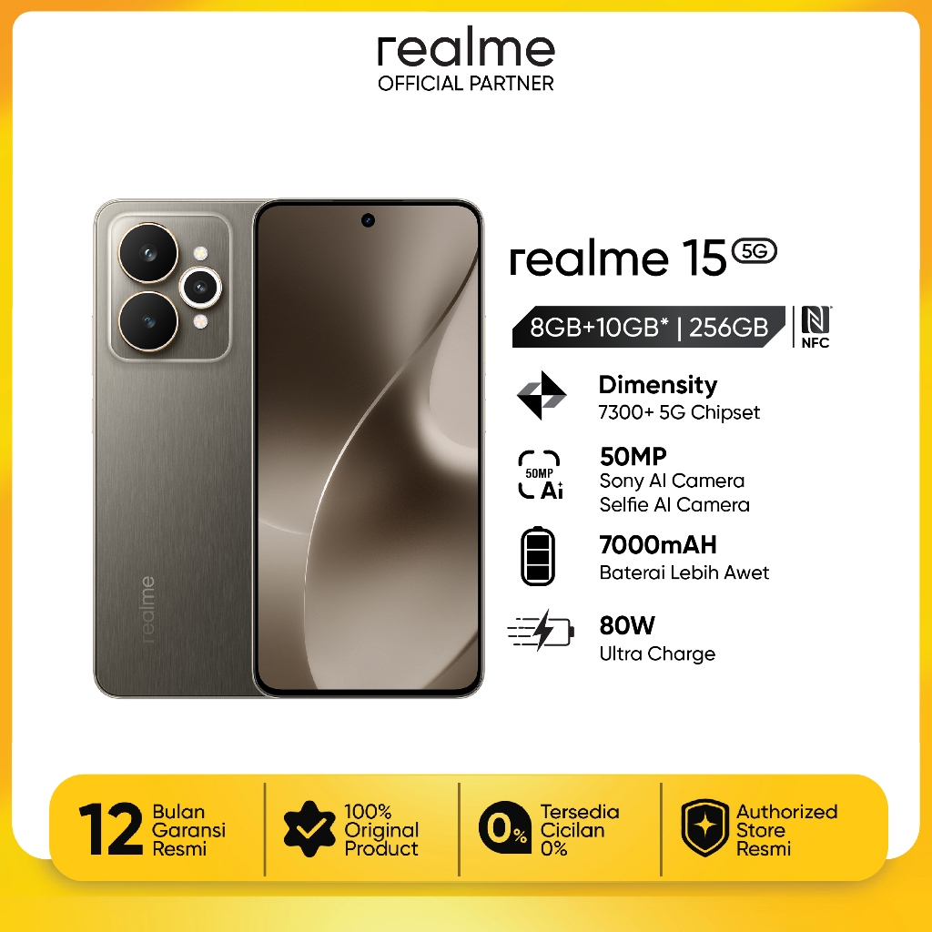 realme 15 8GB+10GB 256GB 50MP Sony AI Camera Dimensity 7300+ 5G Chipset AI Glare Remover AI MagicGlow 2.0 AI Snap Mode AI Multi-Tasker AI Landscape+