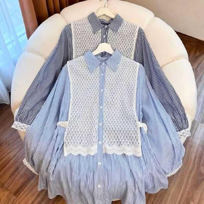 ARUNI BLOUSE KEMEJA SALUR KOMBINASI BRUKAT PREMIUM / KEMEJA WANITA MOTIF SALUR LENGAN PANJANG