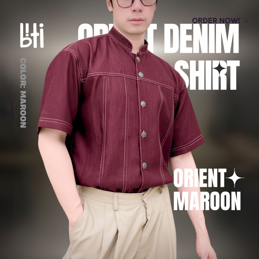 BITI Orient Denim Shirt | Kemeja Outer Koko Denim Jeans Pria Lengan Pendek Kerah Shanghai Oriental