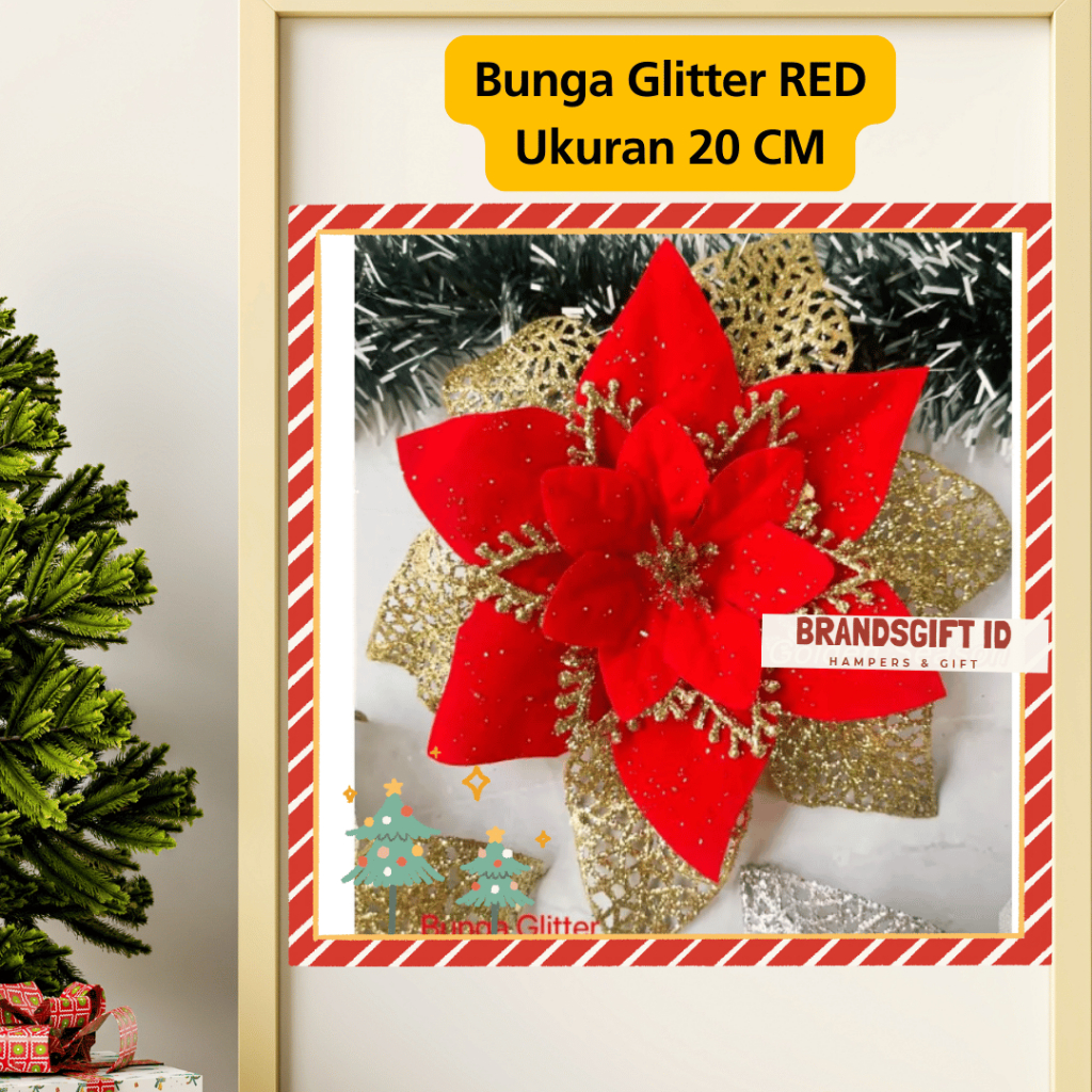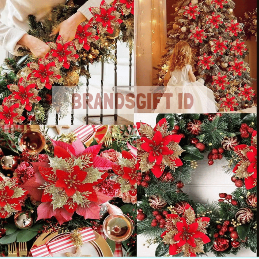 Dekorasi Hiasan Bunga Kastuba Poinsettia Ornamen Dekorasi Aksesoris Gantungan Pohon Natal Christmass