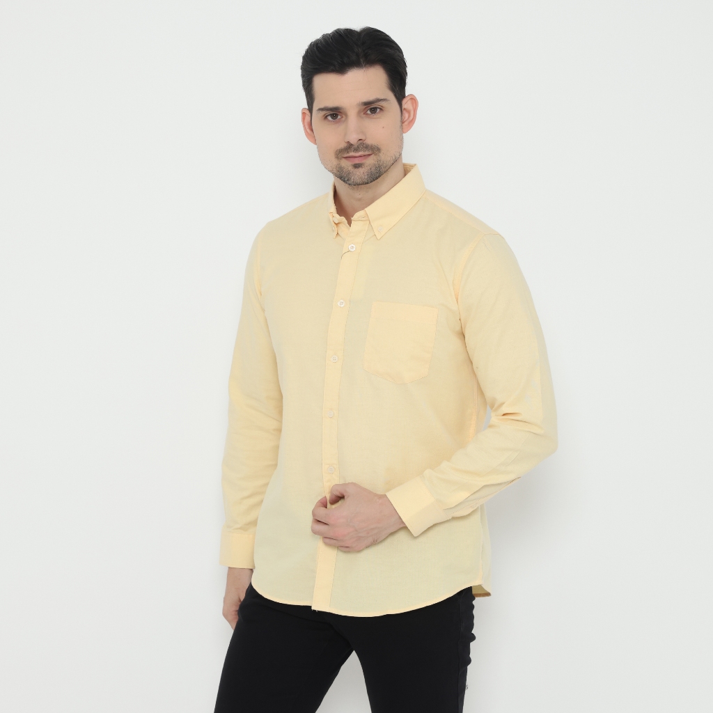 Platini Kemeja Pria Polos Lengan Panjang Katun Oxford Yellow 66208
