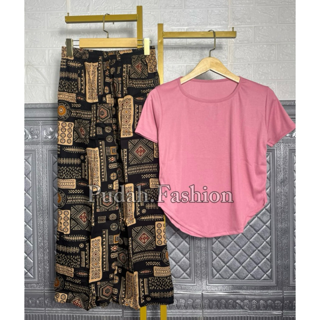 Set celana kulot rayon hommy / kaos Square Neck wanita lengan pendek /Set terbaru