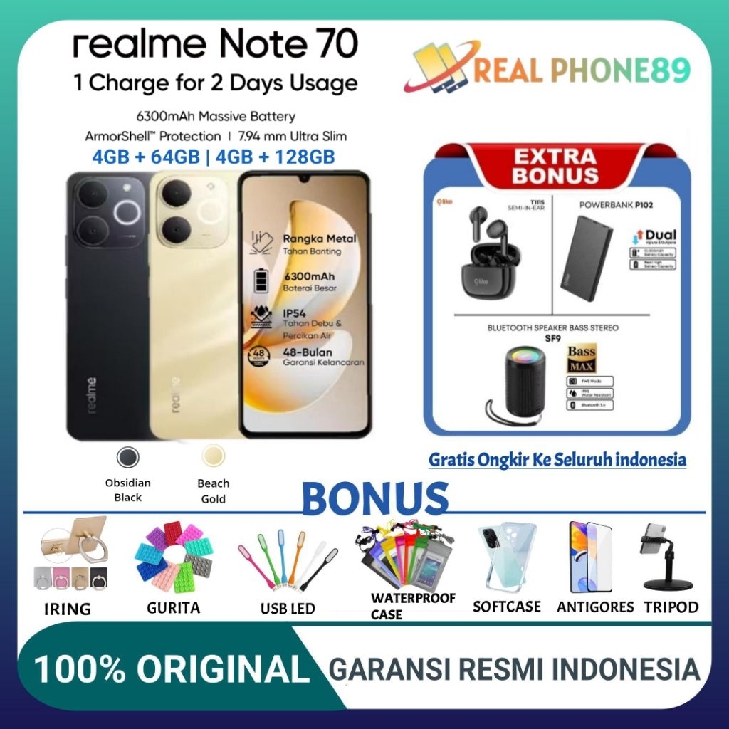 REALME NOTE 70 4/64GB 4/128GB 6300mAh IP54 Tahan Percikan Air GARANSI RESMI