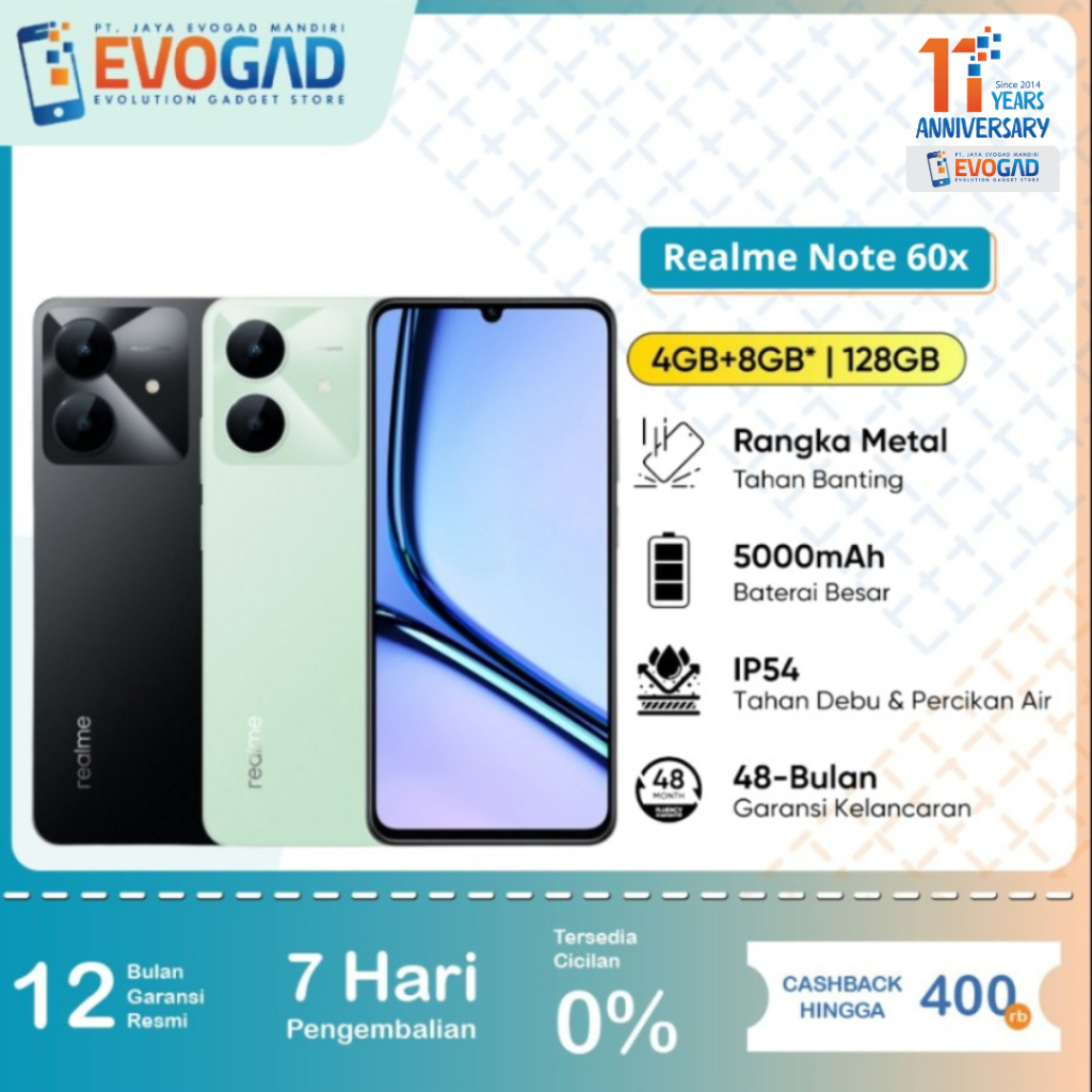 Realme Note 60x 4/64 & 4/128GB, Layar 90Hz, 5000mAh Rainwater Smart Touch Garansi Resmi Realme Indonesia 1 Tahun