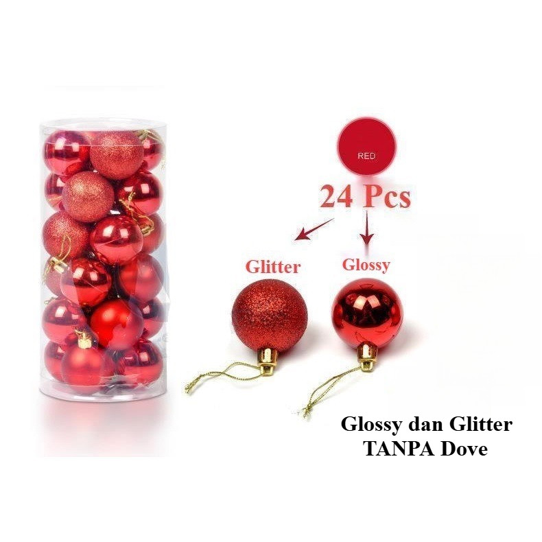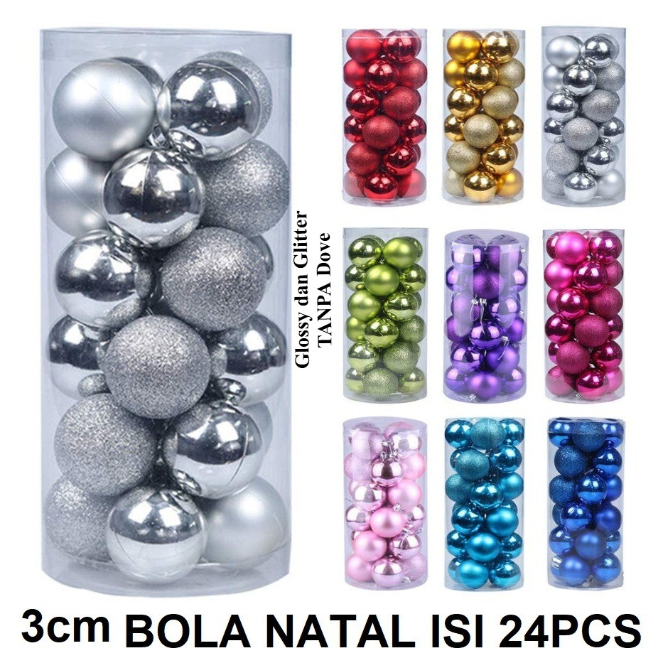24pcs Bola Natal 3cm buah paket Hiasan Dekorasi Pohon Natal Rias Murah Cantik Merry Christmas Tree Hampers Garland Krans Ruangan 1 meter 2 meter mtr