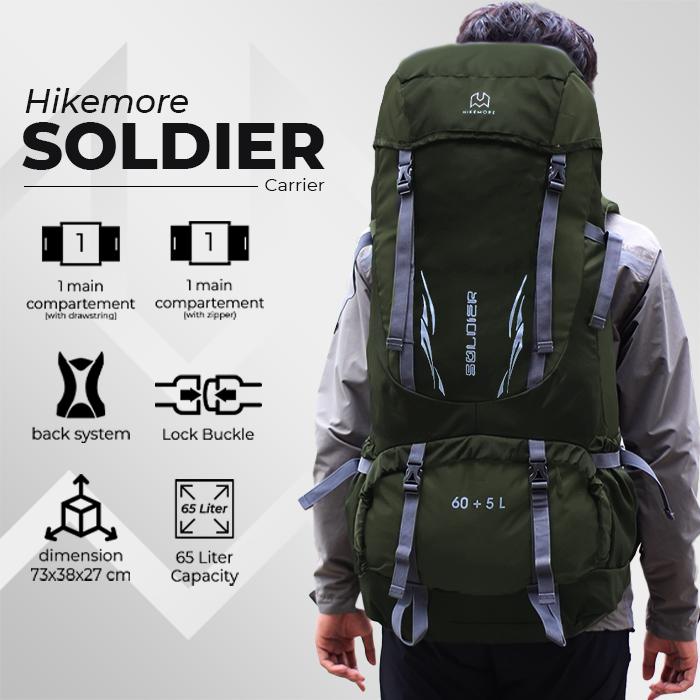 TAS CARRIER HIKEMORE SOLDIER 65 & 45 LITER PRIA GUNUNG OUTDOOR - BLACK 65L